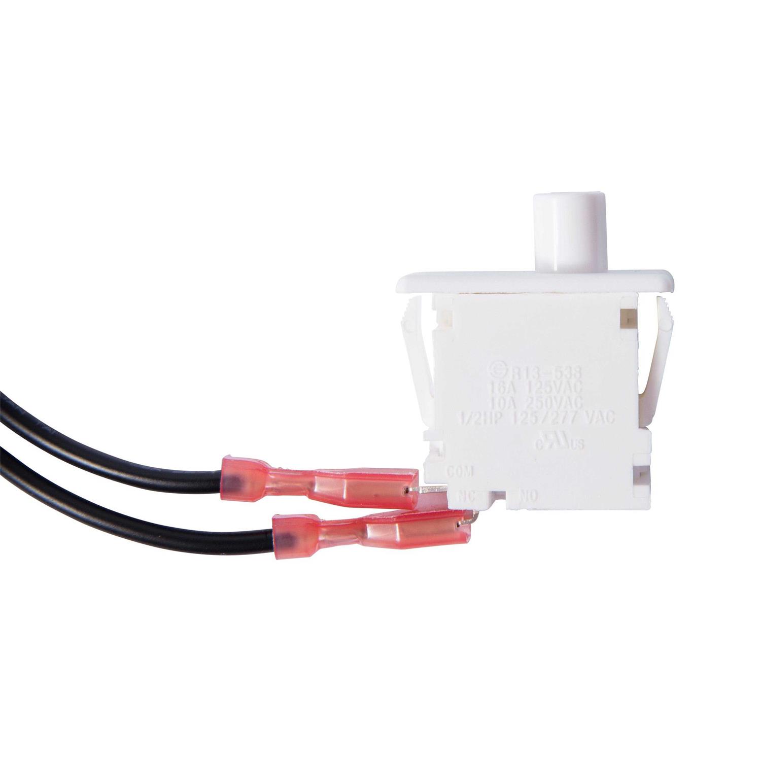 - Push button switch with metal box, cover plate and mounting hardware to operate lights when door is opened.