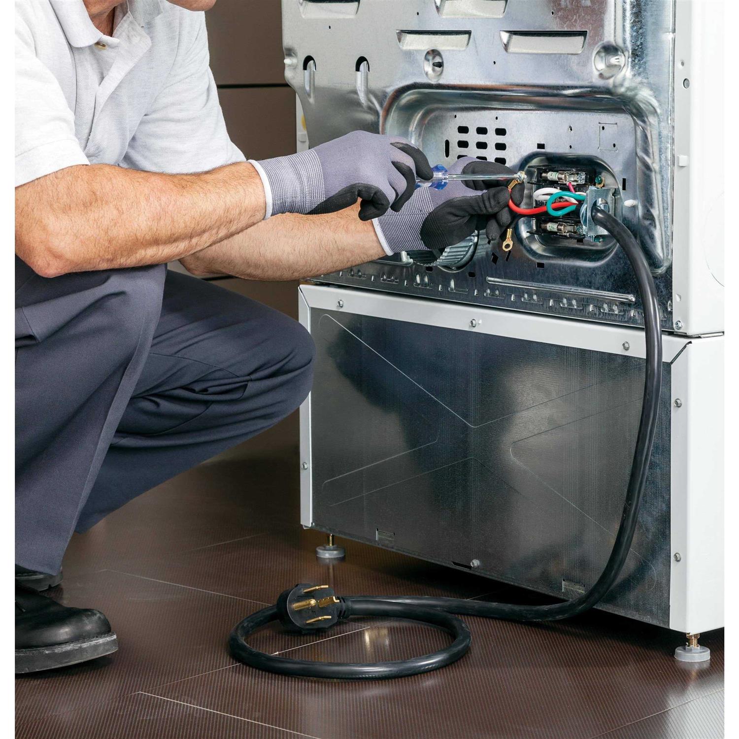 Easily install your electric range using the GE 6′ Universal 30 Amp 4-Prong Dryer Power Cord. The ring terminal is easy to hook up for quick set up. With a right angle plug, the GE 6′ Universal 30 Amp 4-Prong Dryer Power Cord stays conveniently out of the way. The cord clamp reduces strain on terminals for safer operation. The GE 6′ Universal 30 Amp 4-Prong Dryer Power Cord is compatible with most electric ranges that use a four-prong outlet box for versatile installation.