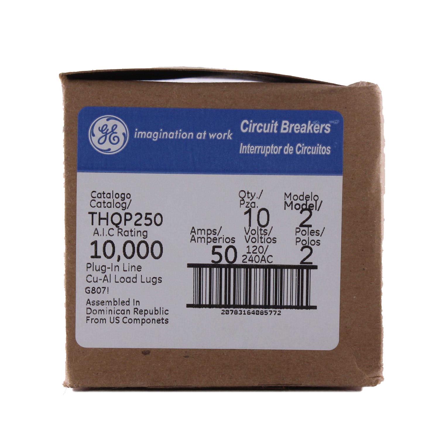 GE Thqp250 Double Pole Circuit Breaker, 50 Amp