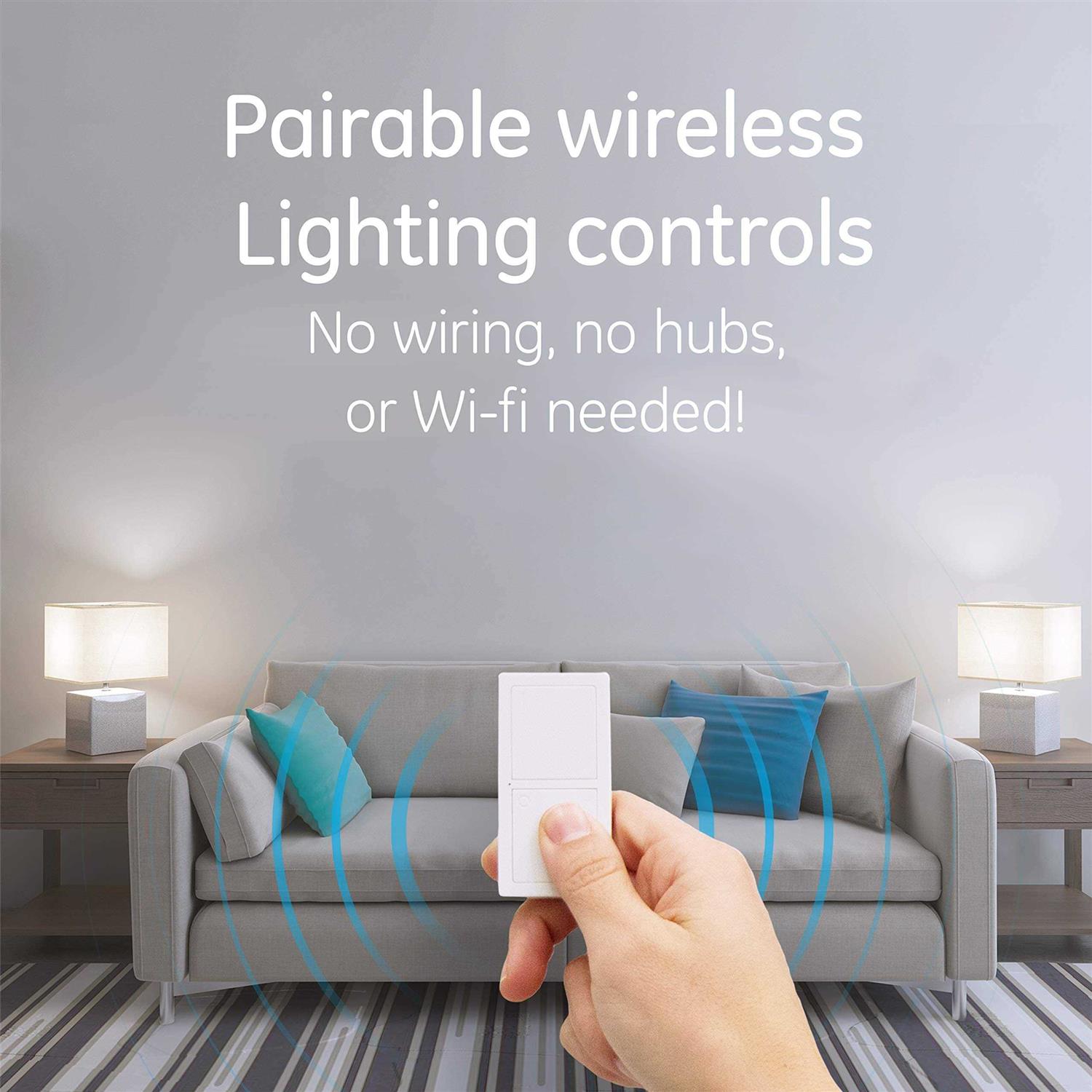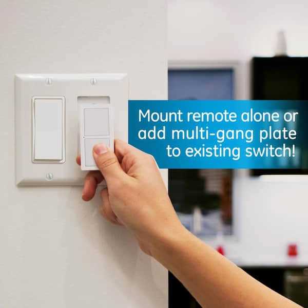 The power of light is at your fingertips with the mySelectSmart Wireless Remote Lighting Control. A convenient lighting solution for any household, the wireless remote works as a portable lighting control or can be mounted in a wall plate by itself or next to an existing switch. Simply connect the light you want to control to the plug-in receiver, plug the receiver into a nearby outlet and you’re ready to go. With an overall signal range of 150 ft., the discrete, versatile design of the remote makes it suitable for controlling lights in any indoor space. Take control of your lighting with mySelectSmart wireless lighting controls. Remote doubles as a switch and can be wall mounted as a lone switch (hardware included) or added to a multi-gang plate to an existing switch (multi-gang wall plate not included) Portable remote features on/off buttons and has a signal range of up to 150 ft. from the receiver; remote requires 1 CR2032 battery (included). Plug-in receiver features 1 polarized outlet and plugs-in to a standard in-wall receptacle without blocking access to the lower outlet Conveniently control indoor plug-in, holiday and seasonal lighting with this wireless on/off remote and plug-in receiver; compatible with LED, CFL and incandescent lighting. Can be paired with additional receivers, transmitters or other mySelectSmart lighting controls (sold separately).