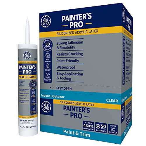 GE-branded Painter’s Pro Siliconized Acrylic Latex (MAP210WT) is an advanced-grade waterproof sealant ideal for decorative paint projects that require a flexible seal. Painter’s Pro Acrylic Latex sealant is low odor, low VOC (Meets CARB VOC limits) and ready to paint in as little as 30 minutes. This formulation exceeds ASTM C-920 for a durable and flexible seal that resists cracking and offers dependable results for both interior and exterior projects. Fully cured sealant is resistant to stain-causing mold and mildew growth and is great for both indoor and outdoor use. Painter’s Pro Siliconized Acrylic Latex sealant creates durable seals that are resilient and tough for long-lasting professional results. Backed with a 50-year durability guarantee.