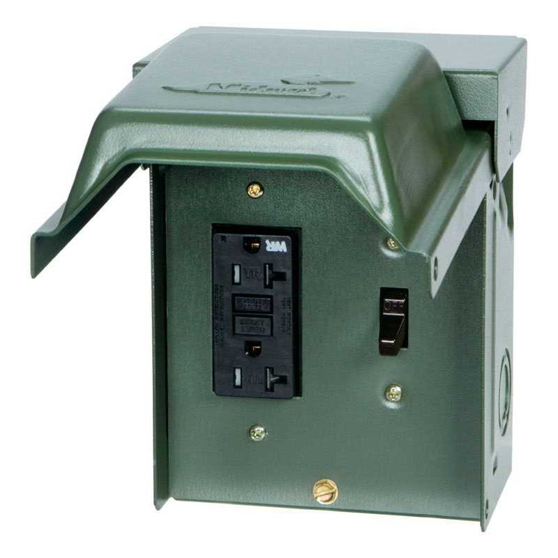 Made of corrosion-resistant galvanized steel with a dark-green finish to match natural landscape. Comes pre-assembled for immediate installation right out of the box. The rolled edge hinged door allows cords to exit freely. Offers a padlock provision to help prevent unauthorized access. Features a ‘While-in- Use’ cover for outdoor use. Rated for 120-Volt. Ul listed. Made of corrosion- resistant galvanized steel with a dark-green finish to match natural landscape. Comes pre-assembled for immediate installation right out of the box. The rolled edge hinged door allows cords to exit freely. Offers a padlock provision to help prevent unauthorized access. Features a ‘While-in-Use’ cover for outdoor use. Rated for 120-Volt. Ul listed.