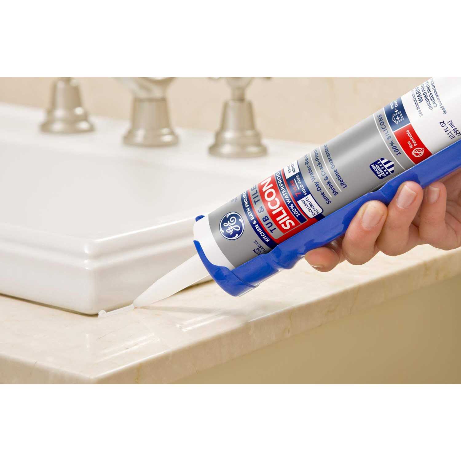 GE Silicone I Tub and Tile 100% silicone is a permanently waterproof caulk for use in kitchen and bath, as well as plumbing applications. GE Silicone I Tub and Tile provides mold-resistant product protection as never cracks, shrinks, breaks down or washes away.