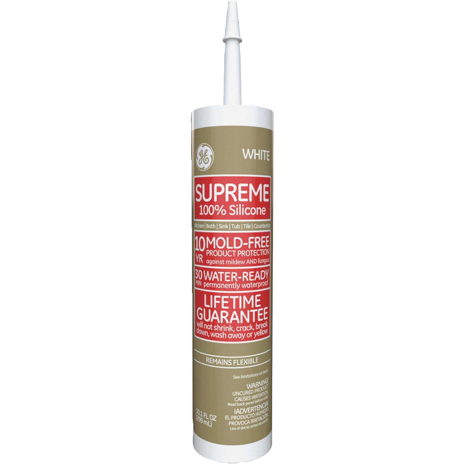 GE Supreme Kitchen & Bath 100% Silicone Sealant, White – 10.1 oz tube