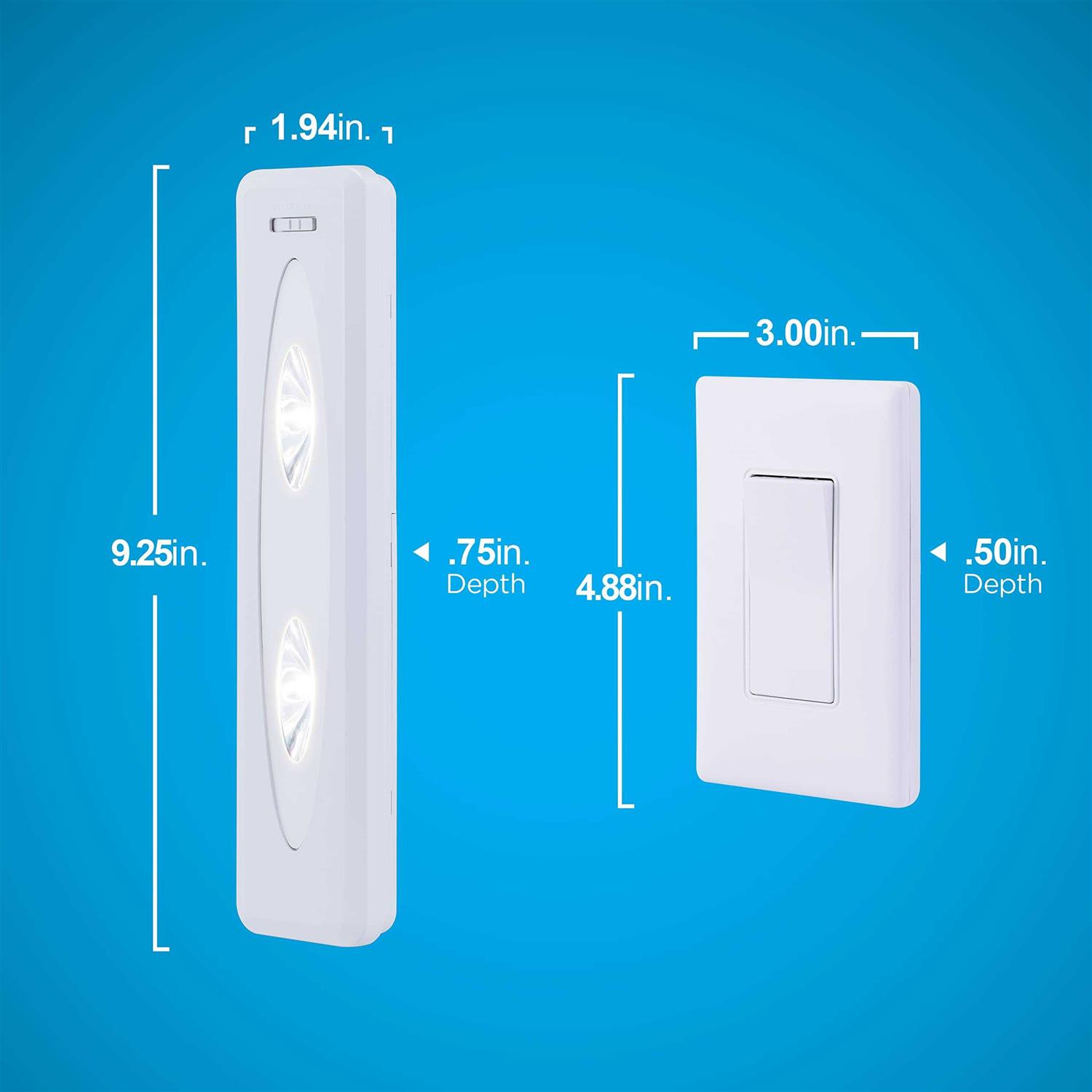 Add a light to those dark spaces around your home with the LED Light Bars. These light bars are perfect for use in your kitchen, pantry, cabinets, garage, tool sheds, and more. The lights are battery operated, which means no wiring is required. Super long life white LEDs are included, and you will never need to replace any bulbs. Operating the lights is made easy with the wireless remote control switch that controls the lights up to 50 feet away. The switch can easily be mounted to any wall using the hook and loop strips, while mounting screws or double-sided tape can be used to mount the light bars (all included). The lights have two operating modes to choose from – either control them with the battery operated remote control or use the manual on/off button located on each light. These lights are for indoor use only and should not be used in damp or wet locations. Enhance the vibe in your home with GE Wireless Remote Control LED Light Bars. Size: W 9.5 inch / D 0.9 inch / H 12.4 inch. Material: Plastic.