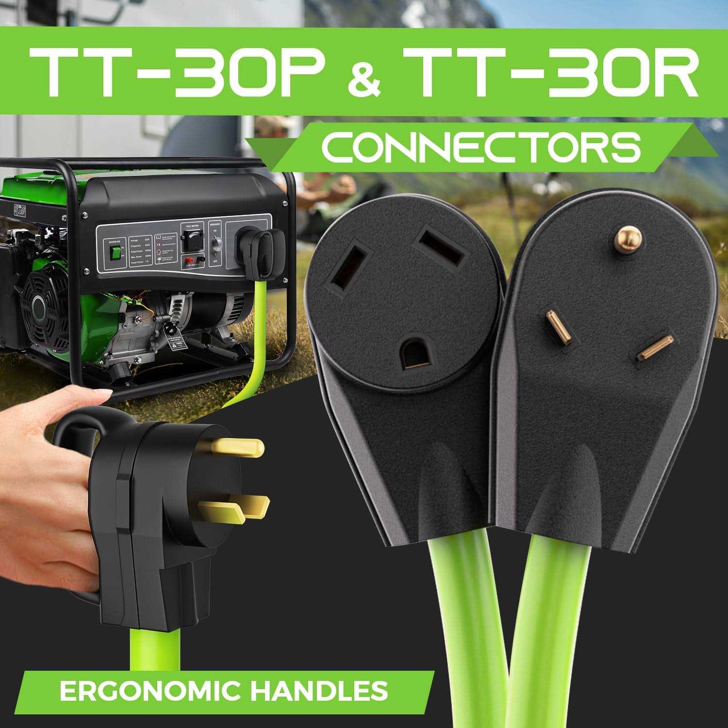 Why should you choose GearIT? The GearIT Generator Extension Cord allows you to run your generator from a long distance, protecting you and your family from noise and hazardous material. The generator extension cord features a heat and cold resistant thermoplastic jacket, you can be sure your power cord will remain flexible and function perfectly whether the temperature outside is extremely hot or cold. Ideal for quick and dependable use of power, this 100-foot, high-capacity 10-gauge wire is surrounded by durable, outdoor-rated insulation (STW). Overview Whether your’re powering your essential items during an emergency or powering up your tools in remote locations, GearIT extension cord can be depended upon in any situation. GearIT 30 Amp extension cord plug design connects Male NEMA TT-30P to Female NEMA TT-30R. Specifications