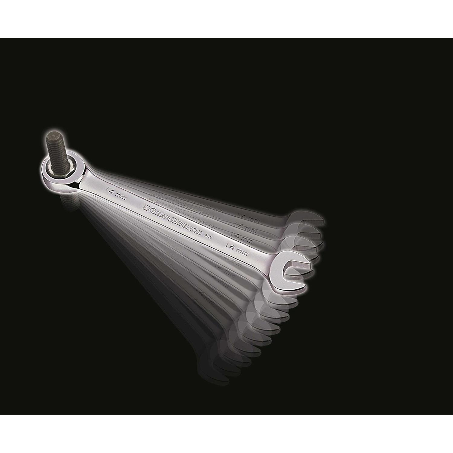 The GearWrench 20 Piece SAE/Metric Ratcheting Combination Wrench Set (35720A-02) combines the speed of a ratchet with the access and control of a wrench. The 72-tooth ratcheting box end is designed to need as little as 5° to move fasteners vs 30° for a standard wrench. Pass-through technology allows for fitting the ratcheting box end down over long threaded rods. The open end allows for easier access on tough to reach spots, making jobs go faster and easier. This set is is the perfect addition to your tool collection.