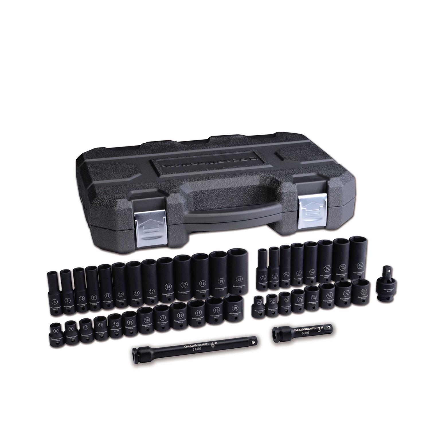 GearWrench 3/8 Drive 6 Point Standard&Deep Impact SAE/Metric Socket Set-44 Pc 84916N