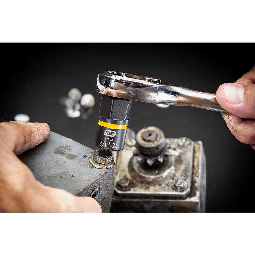 - Dual sized sockets designed to work with both SAE and metric fasteners