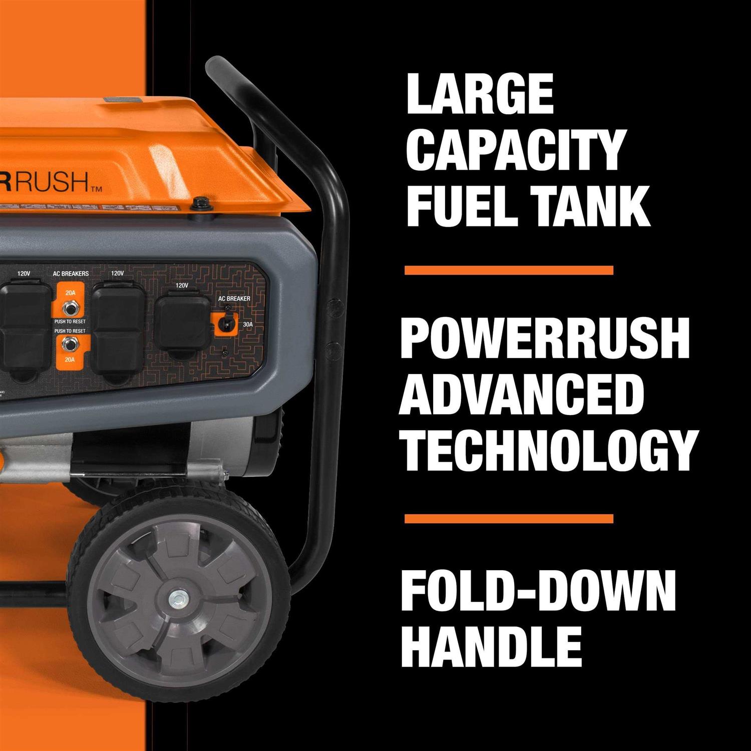 - Featuring Generac’s PowerRush ADVANCED TECHNOLOGY – Delivers over 40% more starting capacity allowing you to do more with less.