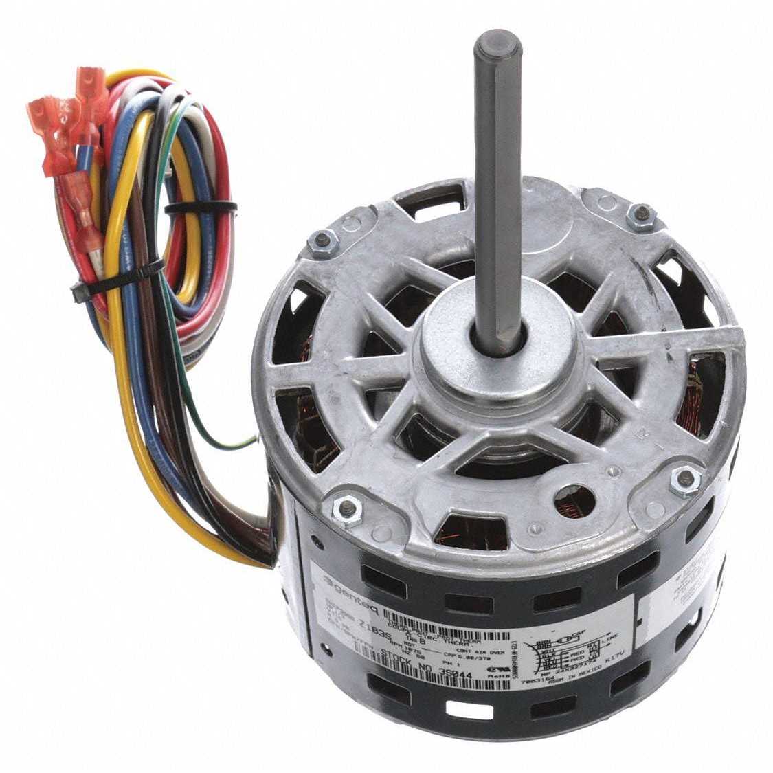 OEM Replacement Brand Carrier/BDP, 1/3 HP, RPM Range 1001-1100, Voltage 115, Motor Shaft Rotation CCWLE, Frame 48, Ring Motor Mounting Type, Shaft Dia. 1/2 In, Shaft Length 4-3/4 In, Number of Shafts 1, Motor Thermal Protection Auto, Nameplate RPM 1075, Full Load Amps 5.2, 60 Hz, Ins. Class B, Max. Ambient Temp. 40 Degrees C, Motor Service Factor 1.00, Sleeve Motor Bearings, Overall Length 9-3/8 In, Capacitor Required 2MDV4Features – Voltage: 115Capacitor Required: 2MDV4Stud Size: #8-32Shaft Length: 4-3/4″Item: Direct Drive Motor – Motor Shaft Rotation: CCWLEStandards: UL Recognized, CSA Certified – Motor Service Factor: 1.00Voltage Compatibility: 115, 120, 115/208-230, 115/230, 120/240Max. Ambient Temp: 40 Degrees CPhase: 1Ins. Class: BShaft Dia: 1/2″Motor Bearings: Sleeve – Motor Sub Application: Direct Drive Fan/Blower – Motor Thermal Protection: Auto – Length Less Shaft: 4-5/8″Bolt Circle Dia: 5-1/5″Full Load Amps: 5.2Nameplate RPM: 1075Frame: 48Motor Enclosure Design: Open Air-Over – Motor Design: Permanent Split Capacitor – Motor Application: OEM Replacement – HP: 1/3Application: Carrier/BDPHz: 60Mounting Stud Pattern: 3-5/8″ x 3-5/8″Body Dia: 5-5/8″No. of Speeds: 4Overall Length: 9-3/8″RPM Range: 1001-1100Motor Mounting Type: Ring