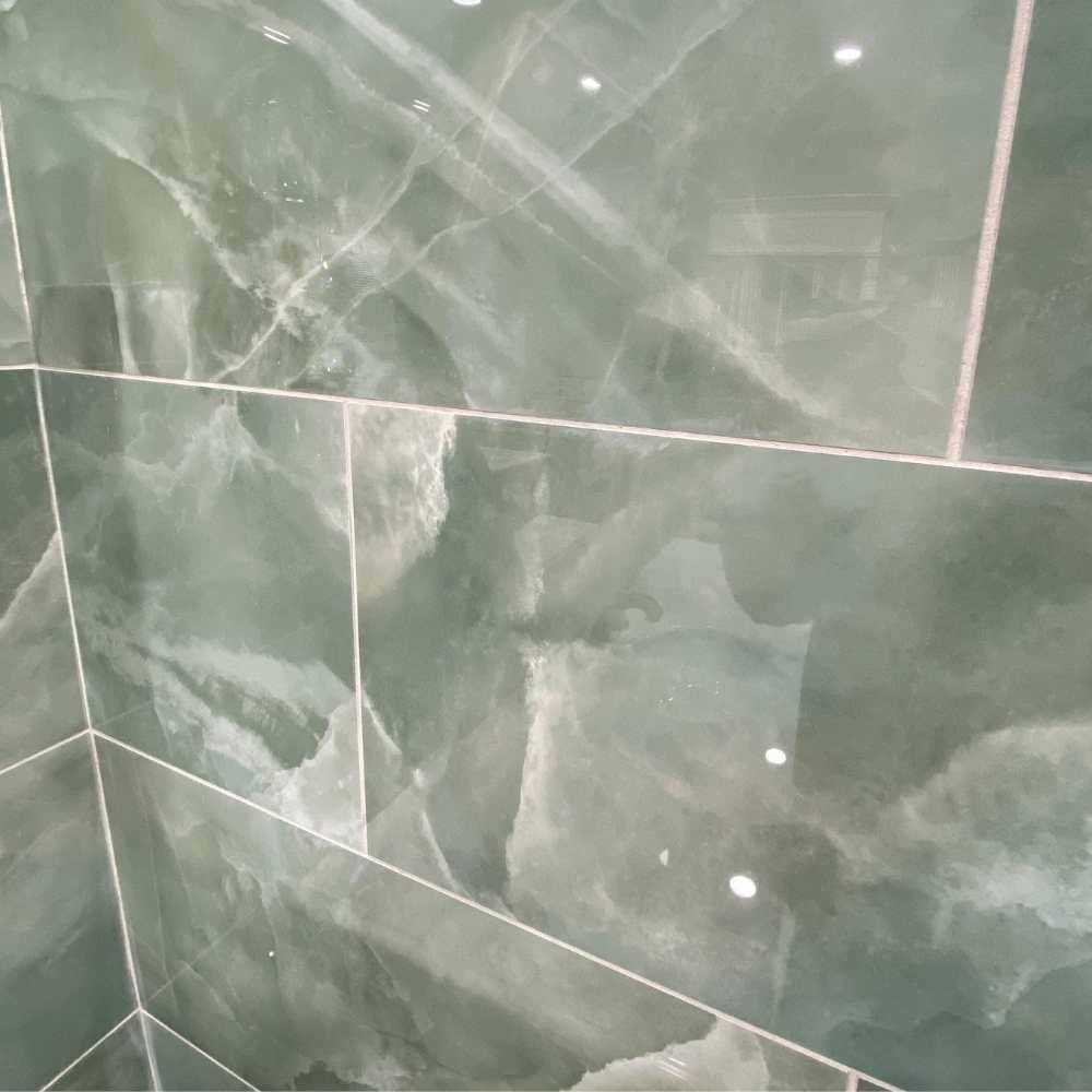 The Tile Life Geo Lust collection is a high-visual, glamorous set of neutral and jewel-toned tiles. Each tile has its own striking veining that creates a watercolored contrast towards the rest of the tile. When put together, these large-format tiles perfectly recreate the look of natural onyx. This collection’s matte and highly polished finishes embolden the potential for a rich and alluring home style. Geo Lust is available in four colors: Jade, Blue, Grey, and White.