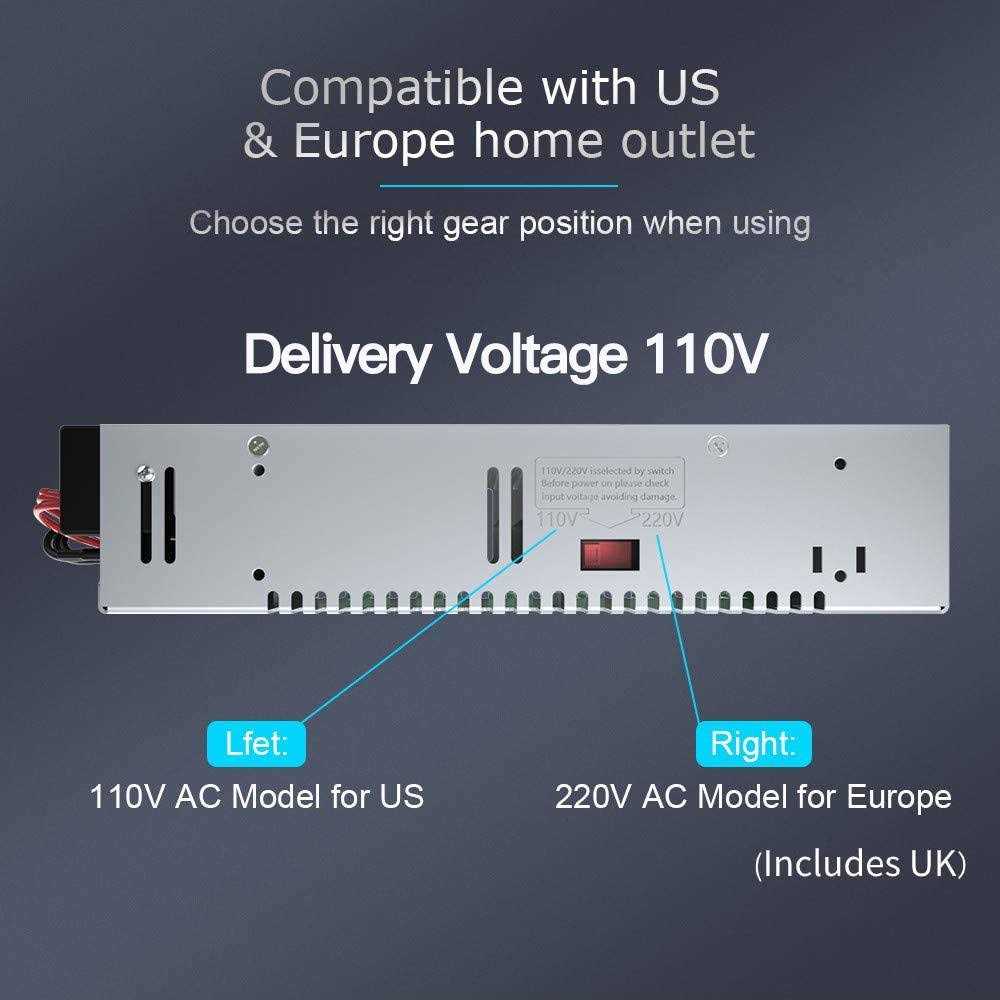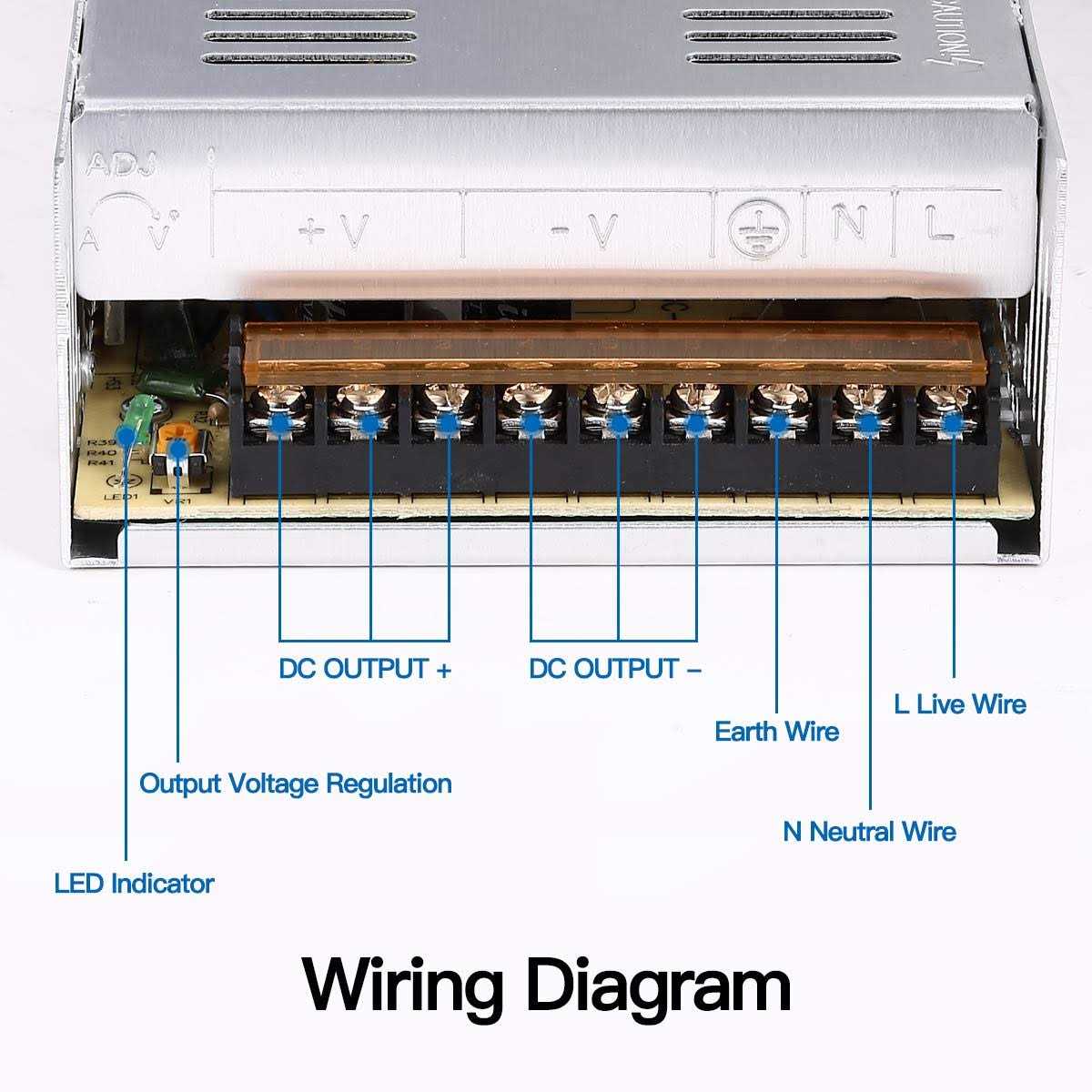This Switching Power Supply 12V 30A 120W is suitable for LED lighting, lamp strips, lamps, light box modules, light emitting words. Security surveillance cameras, instrumentation, 3D printers, etc. Be sure to confirm the input and output voltage first, Factory default output voltage 110V.Technical Parameter Input: AC110V/220V 50/60Hz Output Voltage : DC 12V (Number+V x 2, -V x 2) Output Current: 30A max Output Wattage: 360W max Fix Screw Hole Diameter: 2.5mm (0.1inch) Working Storage temperature: -15 to 55degree Celsius Environmental humidity: 10-95% Material: Metal, Electronic Parts,Rugged heavy duty enclosure Safety Compliance: CCC/FCC/CE/RoHSOverload Voltage Protection Voltage consistency:There is no voltage fluctuations to speak of at power on, during transmit, receive, or at power off. 100% Full load burn-in Tested:Smart device surge protection for Short-circuit Protection, Over Temperature Protection. Low Temperature Rise,low output ripple, noise,Parallel/Redundancy Operation is possible. Note: 1.110V/220V must be selected by switch before using to avoid damaging. Please change the switch to 110V for USA. 2. The unit can work long hours at this current and good cooling environment. The actual output current depends on circuit loads. 3. Do not power the unit before wire connection and voltage adjustment, DO NOT let the unit work long hours over rated current! Work under 80% of rated currency. 4. Even with EMI/RFI filter built inside, still not suitable for a hamradio operator connecting with radio or wireless communication equipments. 5. High Voltage inside, do not remove the cover. Dust the switcher out every 2 or 3 months if necessary. 6. IN-DOOR USE ONLY! This Unit “DOES NOT” comes with installation instruction, wiring cable, on/off switch, or screws. Professional installation of qualified electrician is highly recommended.