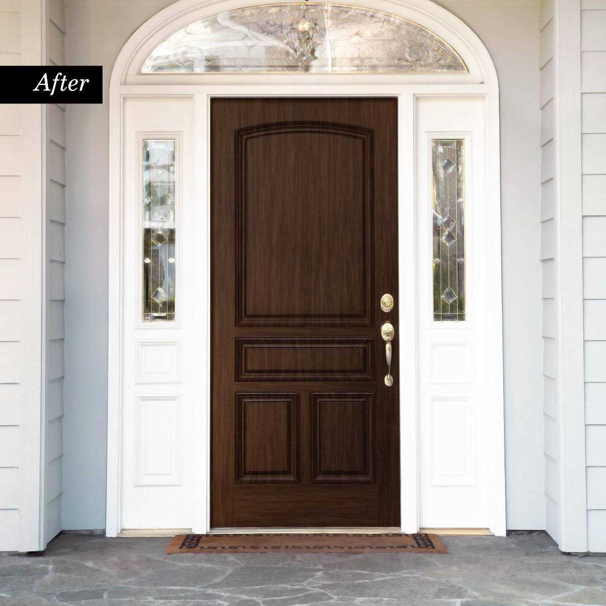 From simple solid or dull, faded colors to the elegance and aesthetics of natural hardwoods, Giani Wood Look will help you paint your front door to look like wood and upgrade your homes curb appeal in a single morning or afternoon. Giani Wood Look Paint for Front Doors is a simple, three-step application that will transform smooth, embossed, flat or raised panel doors in just four hours. Each kit contains all necessary tools and covers 40 sq. ft. of surface, which includes one side of the door and sidelights. Color: Black Walnut.