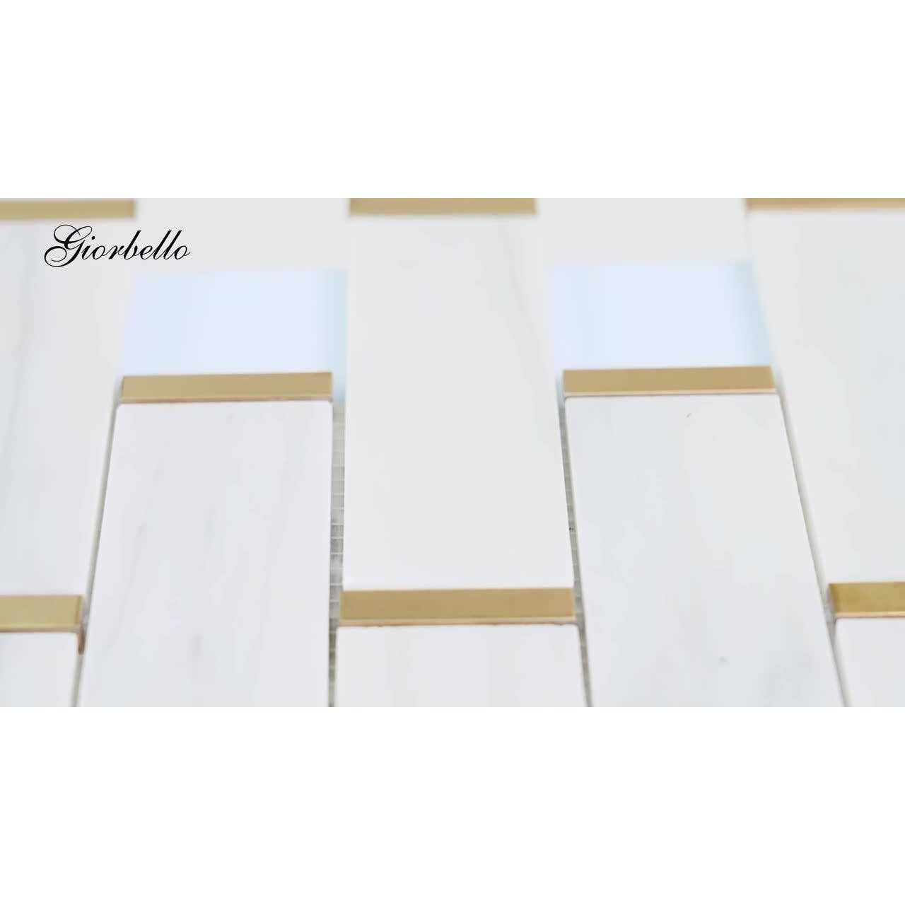 Giorbello White Marble and Gold Steel Trim Subway Mosaic Tile 11x 11.75