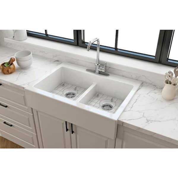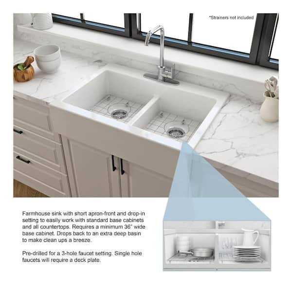Glacier Bay 34 in. Farmhouse/Apron-Front 3-Hole Double Bowl
