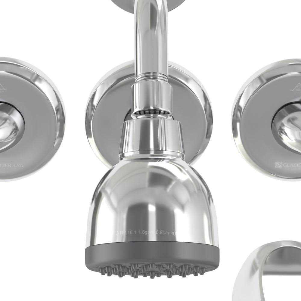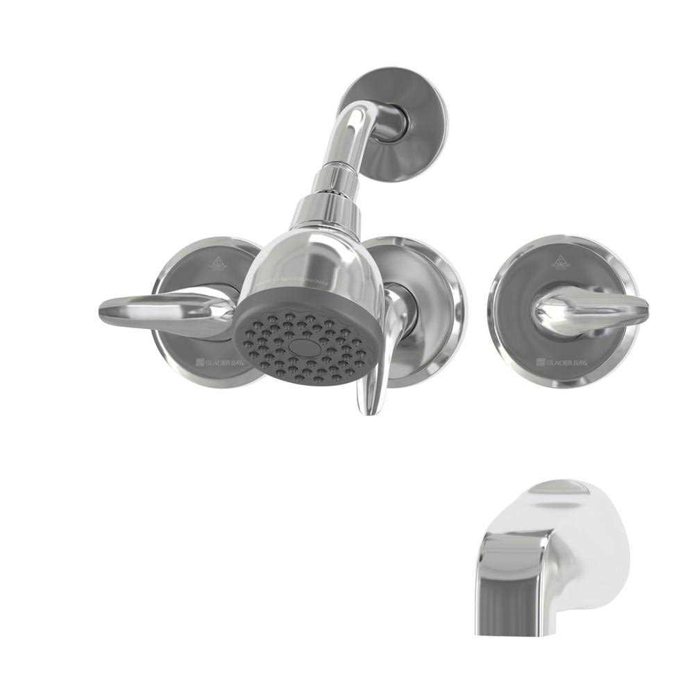 The Glacier Bay WaterSense Aragon 3-handle 1-spray tub and shower faucet in chrome is practical and attractive and will complement a wide variety of bathroom decor. WaterSense certified this faucet has a 1.8 GPM rate to help reduce water use. The 3-handle lever handle design allows you to precisely control water flow and temperature while the single-function shower head provides consistent water flow for an enjoyable shower experience. Durable with an easy to clean chrome finish. Pair with other pieces from the Aragon Collection for a complete and polished look.