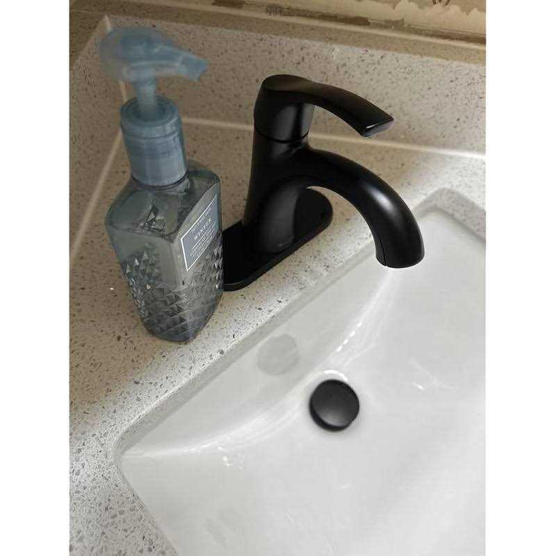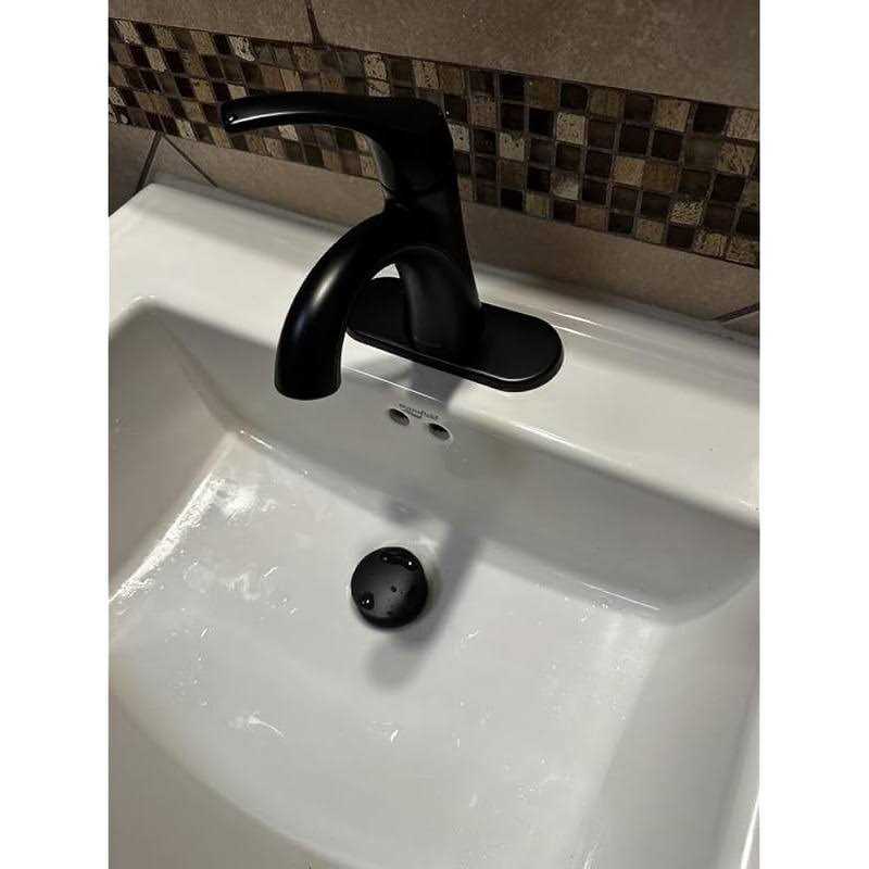 Designed to fit 1 or 3 hole sinks with optional deckplate Clean and streamlined, the Glacier Bay Arnette Single Hole Single-Handle Bathroom Faucet in Matte Black complements styles ranging from coastal cottage to urban cool. This faucet family features a blend of gentle curves and clean lines and is the perfect choice for an easy refresh or an entire remodel that will update your current look. Update your bathroom with this beautiful faucet. Single-handle functionality facilitates precise temperature control with one hand Spout height provides ample washing space Matte black finish for a distinctive look Ceramic disc cartridge ensures drip-free performance WaterSense certified for water efficiency with a 1.2 GPM flow rate to help reduce water use For single-hole or 4 in. center installation Includes a push down pop-up drain assembly Easy to install