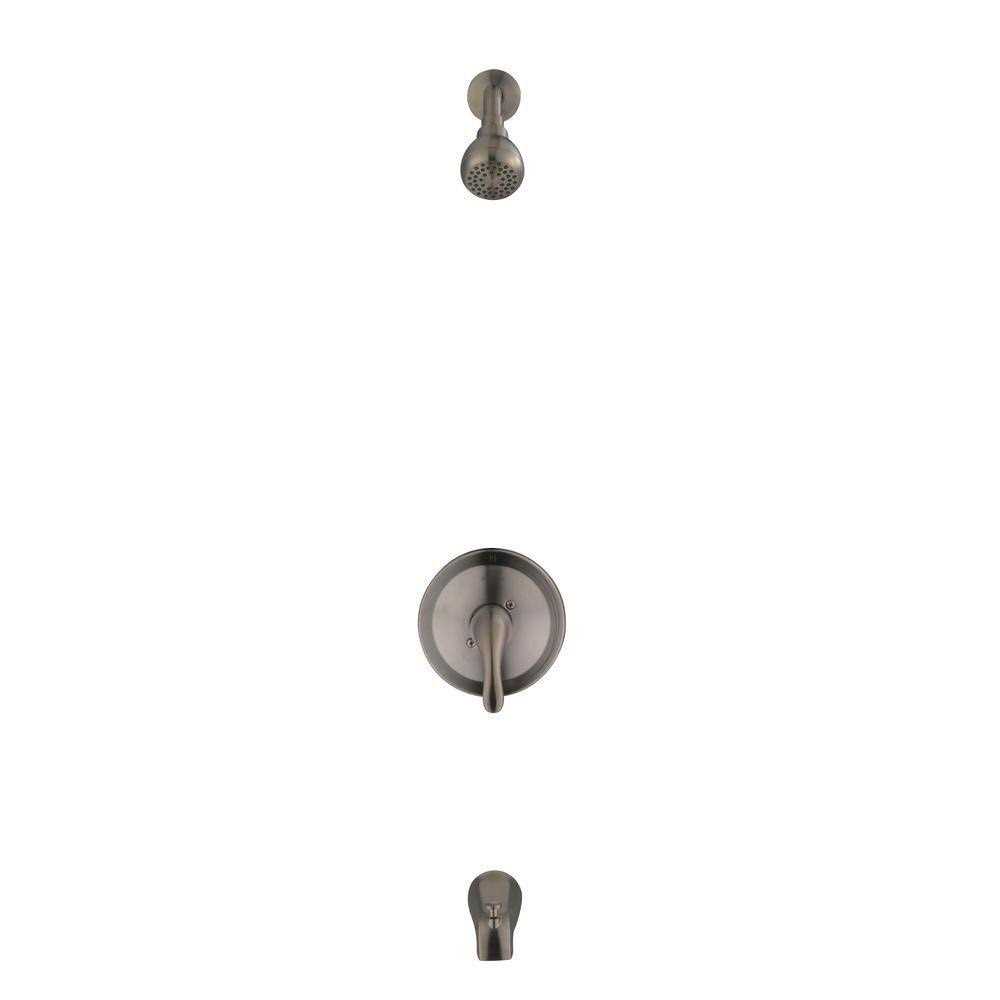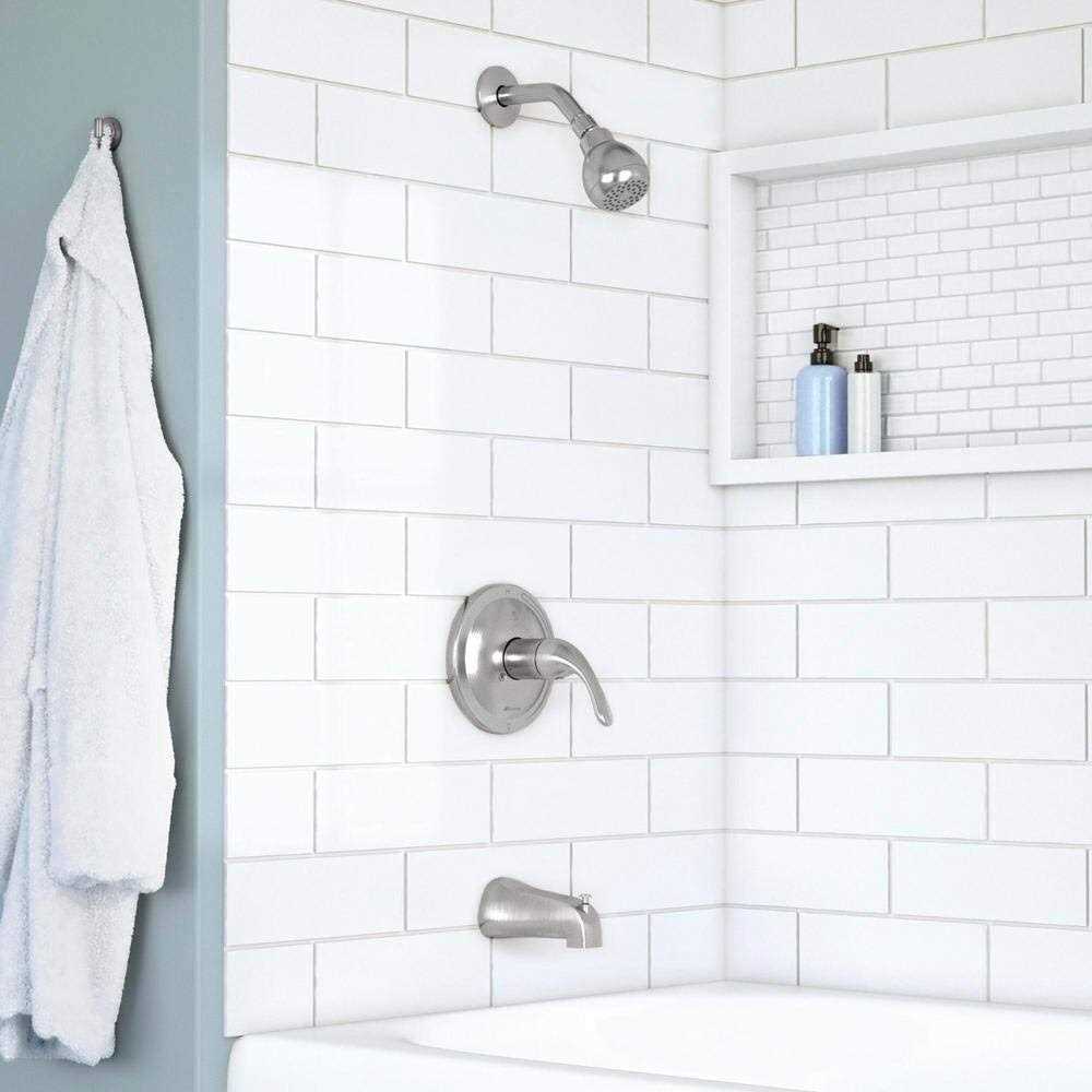 The Glacier Bay Builders Single-Handle 1-Spray Tub and Shower Faucet in Brushed Nickel has classic styling that is ideal for a wide range of bathroom decor. Featuring a sleek brushed nickel finish, the decorative single handle lever, spout and showerhead are easy to operate, while the pressure balance system helps protect against scalding and cold shock for an enjoyable shower every time. The showerhead is WaterSense certified with a 1.8 GPM flow rate. The ceramic disc cartridge ensures drip-free usage. Coordinate with other brushed nickel pieces from the Builders Series to give your bathroom decor lasting polish and performance.