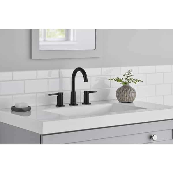 Widespread 2-Handle High-Arc Bathroom Faucet in Matte Black from Glacier Bay features a sleek and contemporary design that complements a wide variety of decor styles. WaterSense certified, this faucet has a 1.2 GPM water flow rate to help conserve water and ceramic cartridges to prevent drips. The 2-handle design and high-arc spout provide easy use and access. Included is a push down pop-up drain assembly.