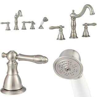 The Lyndhurst 2-Handle Deck-Mount Roman Tub Faucet with Handheld Shower from Glacier Bay seamlessly combines refined, old-world style with modern functionality. Featuring an attractive brushed nickel finish that complements any bathroom decor, the lever-styled metal handles and handheld shower offer a stylish touch and are easy to operate. Durably constructed with ceramic disc cartridges to ensure drip-free performance and WaterSense cerfified with a 1.8 GPM flow rate, this faucet coordinates beautifully with other pieces from the Lyndhurst collection to give your bathroom a sophisticated upgrade.