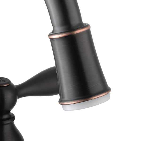 2-Handle LED High Arc Bathroom Faucet in Bronze has a traditional look that will complement a wide variety of bathroom decor. The faucet features an LED aerator that runs off of the kinetic energy generated from the flow of water. The LED is a bright white light which is both stylish and functional. The faucet is also WaterSense certified, this faucet has a 1.2 GPM rate to help reduce water use and ceramic disc cartridges to prevent drips. The high-arc spout design provides plenty of sink space, while the beautifully styled handles allow easy and convenient control of water flow and temperature. This faucet features the Glacier Bay exclusive ClickInstall drain assembly for quick and simple installation. Showcasing a durable bronze finish, pair with other pieces from the Mandouri Collection for a complete look.