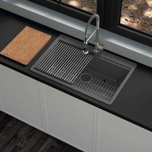 Glacier Bay Stonehaven 33 in. Drop-In Single Bowl Charcoal Gray Granite Composite Workstation Kitchen Sink with Charcoal Strainer
