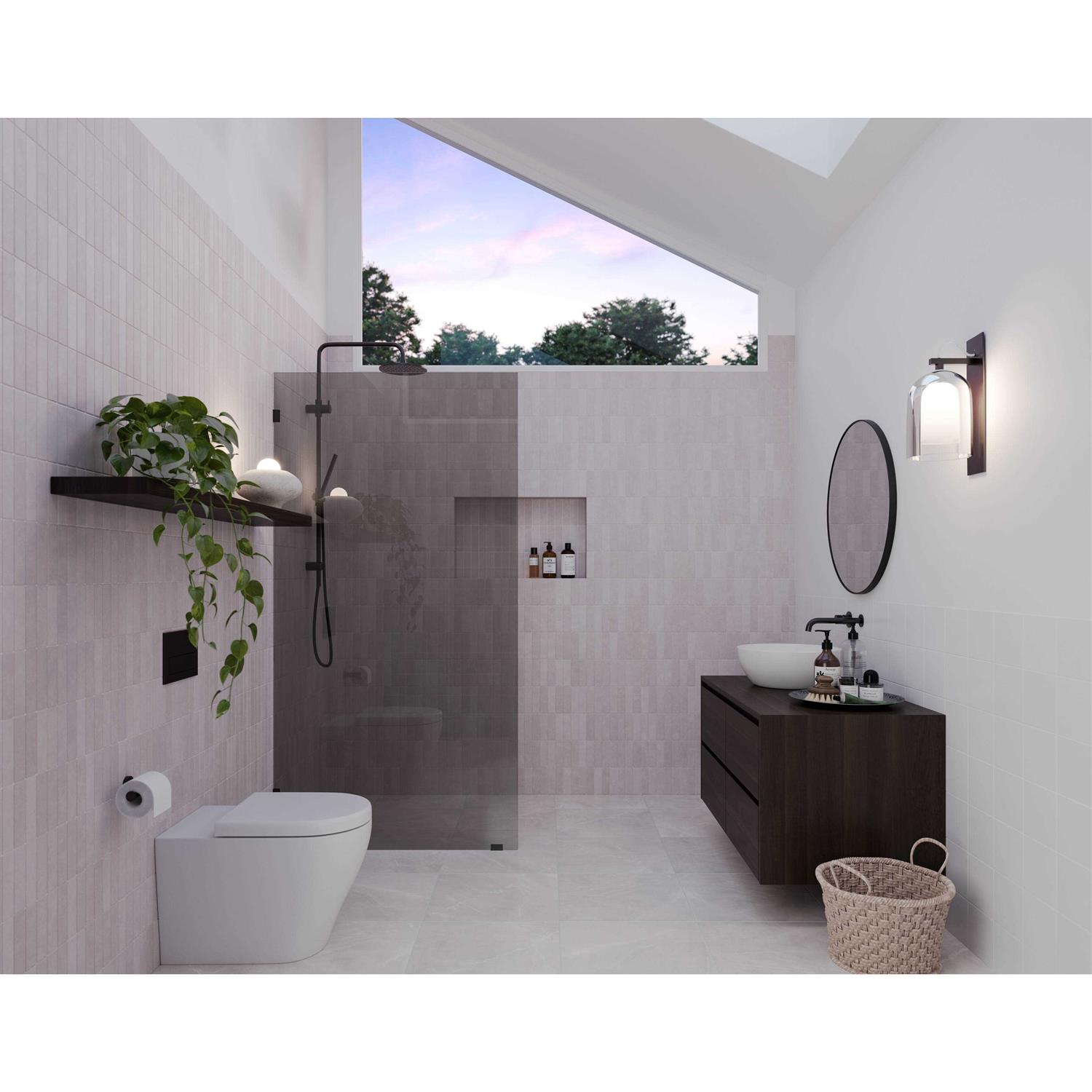 - Modern, tinted gray glass adds an elegant contrast to any shower enclosure.