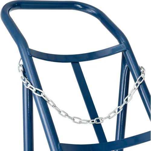 Assembles easily. This Hand Truck is designed to safely transport 12 inch diameter Oxygen, Acetylene, Nitrogen and other Gas Cylinder Tanks. The innovative “tilt-back” design uses 4 wheels for greater stability and less operator effort. Safety chains are included to secure the Cylinder to the truck. All-welded tubular steel ensures years of service. Rolls smoothly on two 8 inch solid rubber wheels and two 3 inch solid rubber swivel casters., Lot of 1