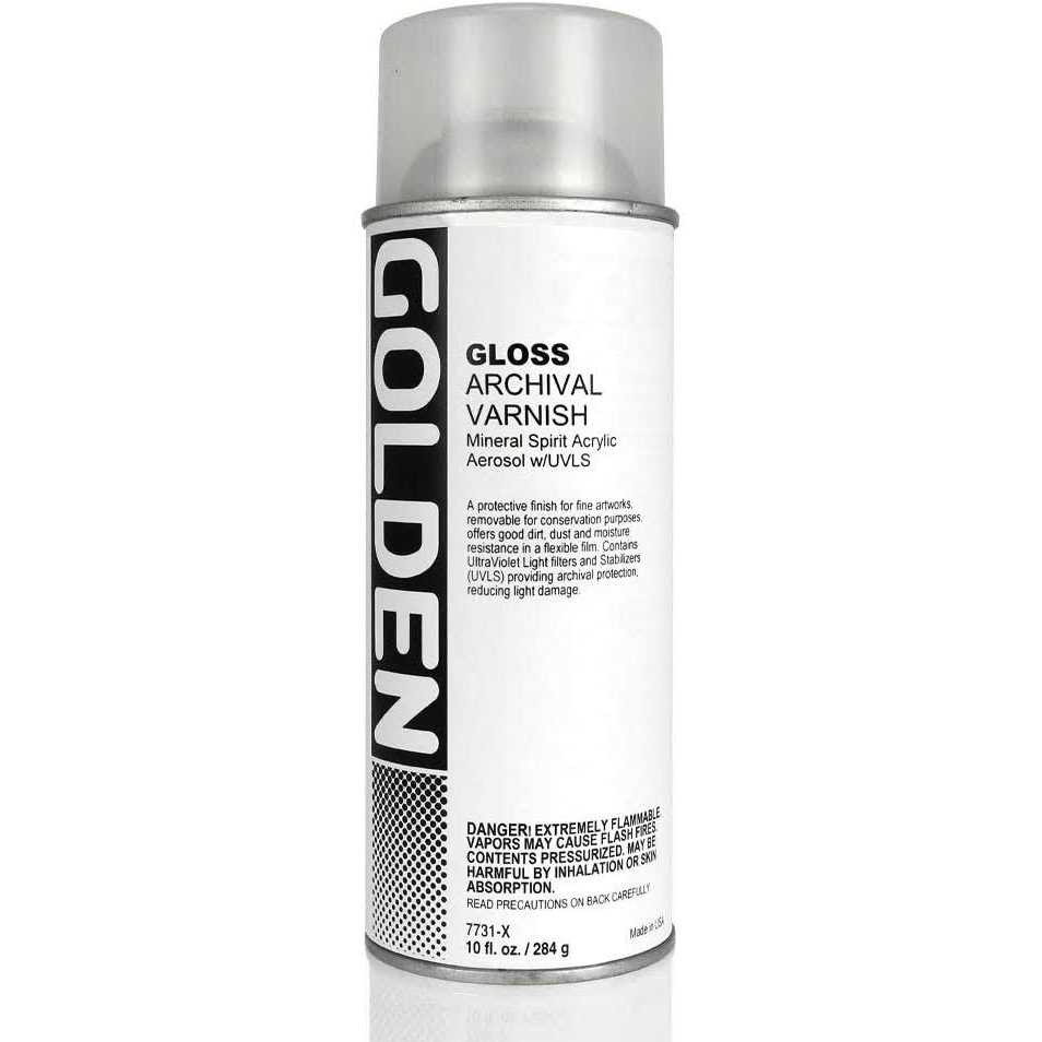 Golden MSA Aerosol Varnish provides a clear protective finish for protection of your artwork against dirt, dust, and moisture. It can be used over a wide variety of mediums including acrylic, oils, watercolours, pastels, and more. This mineral spirit archival varnish from GOLDEN also contains UVLS which help minimise sun damage from UV radiation. GOLDEN MSA Aerosol Varnish is resistant to yellowing and can be removed using mineral spirits if desired. GOLDEN MSA Aerosol Spray Varnish is easy to use with an adjustable fan spray tip that gives artists precision in their application and also helps reduce overspray. Shake the can for 2 minutes prior to use and shake again for 10 seconds after each minute of use. Spray several light coats evenly across the surface, allowing 15-20 minutes between coats. When spraying, hold the can roughly 20-30cm from the surface. Once you are finished applying the spray, hold the can upside down and flush out the varnish by spraying for 5-8 seconds. Allow for sufficient curing time of your varnish after application. Always use GOLDEN MSA Aerosol Spray in well ventilated areas and wear a protective mask and clothing for your safety.