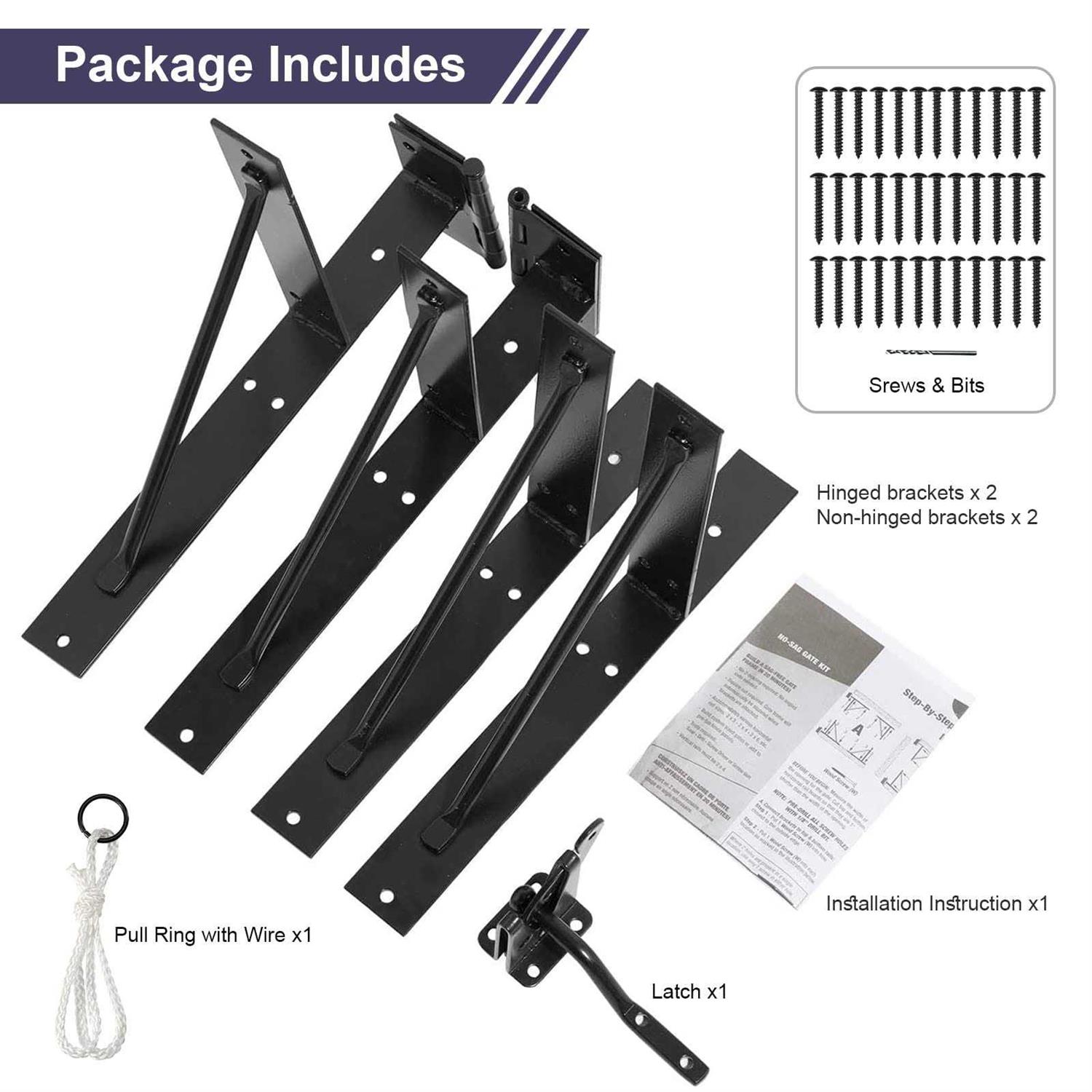 Gate Latches by GoldOrcle. Details:GoldOrcle Heavy Duty Anti-Sag Gate Kit for Wooden Fence Deck GateGate building is made easy with the No-Sag Gate Kit. Allowing you to build a sag-free and square gate easily. This kit made to fit various lumber sizes 2 ft. x 4 ft., 2 ft. x 6 ft., etc. Use it to fix an existing old sagging gate or build a new gate.Choose either left or right swing choices to fit your needs. Kit includes: 2 x hinged brackets 2 x non.