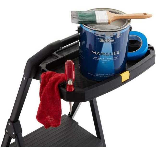 The newly-designed Gorilla Ladders 3-Step PRO-Grade Project Ladder is the perfect climbing tool for everyone from heavy-duty contractors to the casual do-it-yourselfer. The innovative, oversized self-locking project tray provides an extra-large work space, with room to hold all your tools, hardware and accessories, plus it easily folds down and out of the way when not in use. The 300 lbs. capacity and ANSI Type 1A duty rating mean this is a strong, durable ladder that can stand up to the toughest jobs, but it folds down to a slim 3 in. profile for convenient storage and transport. The huge platform steps offer a secure standing area to keep your feet comfortable and keep you safe, while the large slip-resistant feet add stability. This ladder is the ideal choice for any project and will help you get the job done safely. Oversized project tray holds tools, hardware and accessories 300 lbs. capacity, type 1A ANSI duty rating Large platform steps for comfort and stability Slip-resistant feet are stable and durable Sturdy steel construction Available exclusively at The Home Depot Dimensions Assembled Depth (in.) 19.30 in Assembled Height (in.) 61.30 in Assembled Width (in.) 3.03 in Base Spread (in.) 31.75 in Industry Standard Ladder Height (ft.) 5 Reach Height (ft.) 8.92 Rung/Step Depth 12 in Step Rise (in.) 10 Storage Depth (in.) 3 Storage Height (ft.) 5.1 Details Features Foldable,Tray Included Ladder Rating Type 1A – 300 lbs. Ladder Type Step Stool Load Capacity (lb.) 300 lb. Material Steel Number of Steps 3 Product Weight (lb.) 18 lb Storage Width (in.) 19.3
