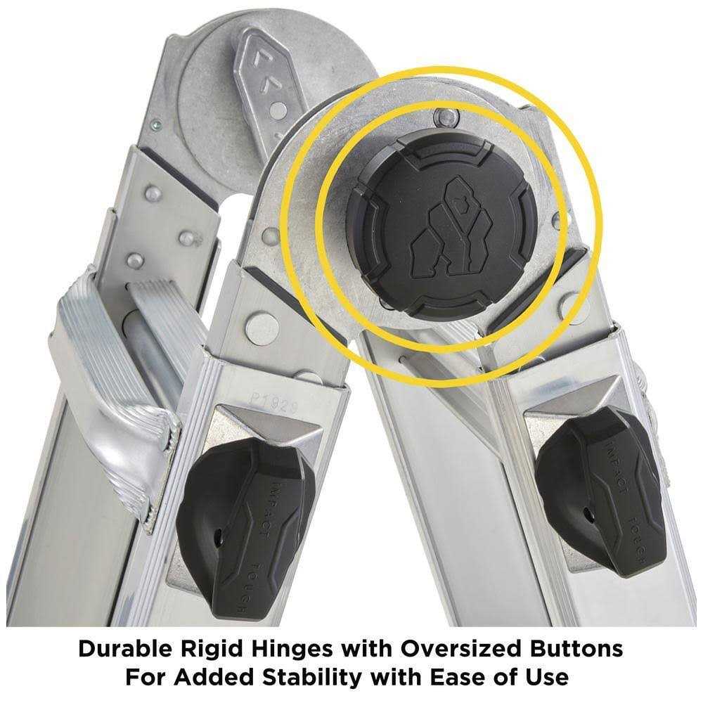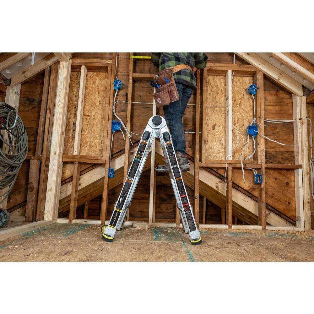 Lighter, stronger, easier – the newly designed Gorilla Ladders 14 ft. Reach MPXW Aluminum Multi-Position ladder with wheels combines versatility, safety and strength. With a 375 lb. weight capacity and telescoping adjustable heights, this ladder can be used as an extension ladder, double-sided twin step ladder, 90 ladder and a stairway step ladder. Easily adjust the height from all sides with 1-hand using the speed locks. The extra-large, heavy-duty hinges give you improved strength with less flex and sway for safer climbing, plus the built-in wheels allow the ladder to be easily transported. The innovative rail design makes this ladder lighter weight yet stronger than comparable models. Reach MPXW Multi-Position Ladder with wheels is the next generation of safe, strong, innovative, and versatile climbing products that is perfect for all your project needs.