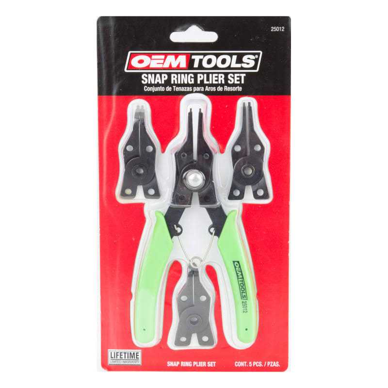This Great Snap Ring Pliers Set 25012 will be a valuable addition to your toolbox. It is ideal for use with both internal and external snap rings. This pair of Saw OEM industrial snap ring pliers feature vinyl grip handles for extra comfort so you can work more efficiently. This versatile tool has four separate jaw configurations, including 90 degree, straight and small and large 45 degree. Make sure that your pliers work as hard as you do with this unique set.