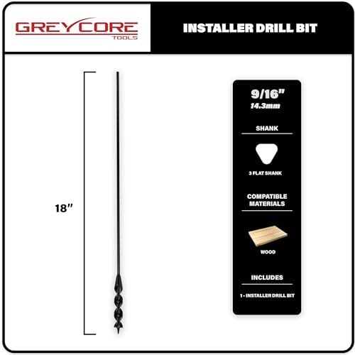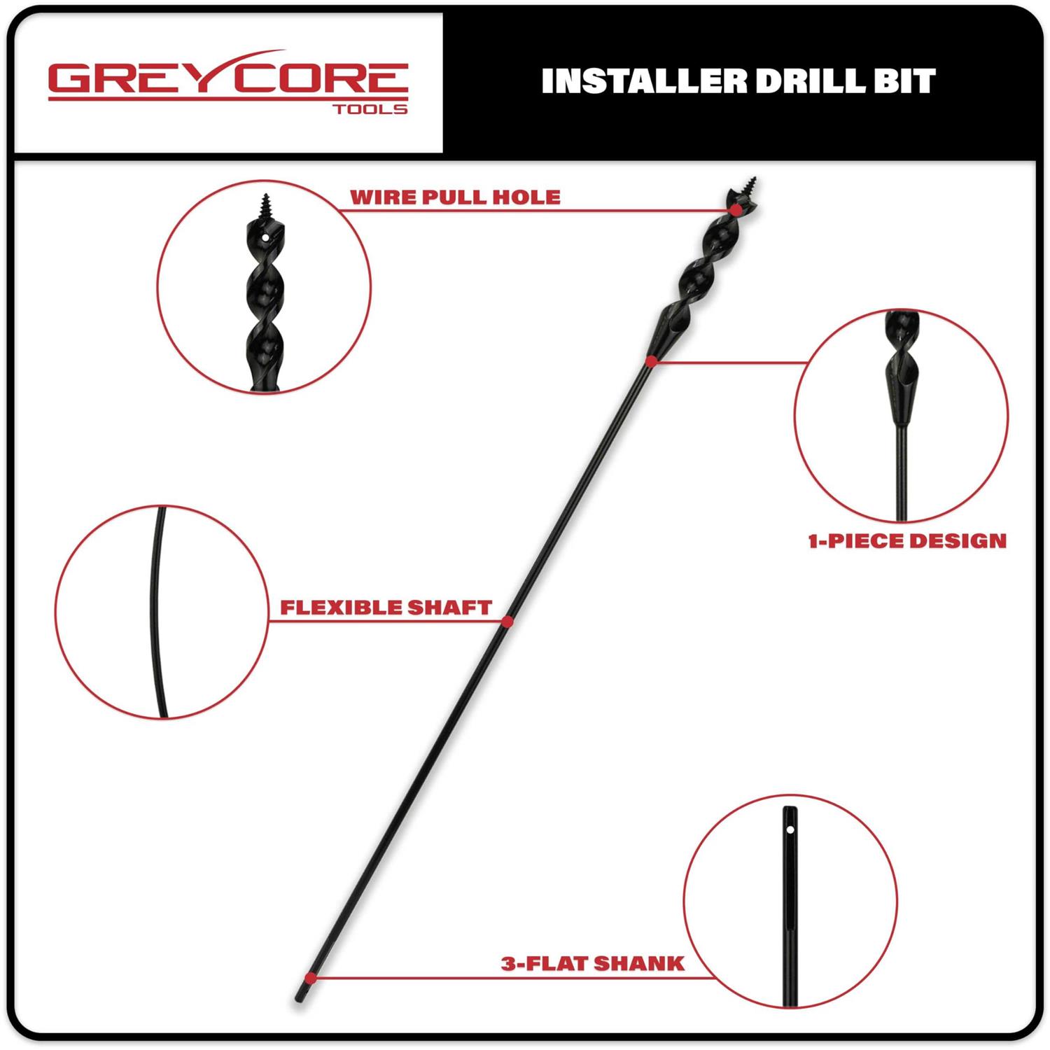 Installer Drill Bits by Greycore. Details:Greycore Tools Installer Drill Bits are the ultimate tool to pull wire through the wall or floor when space is limited. Fish eye holes on both ends of the bit enable wire pulls from either direction. The screw point tip pulls the bit through the wood while the ultra-sharp two cutter auger head creates a smooth hole. Our drill bits are designed, engineered and manufactured to highest possible standards; optimizing durability and service life.
