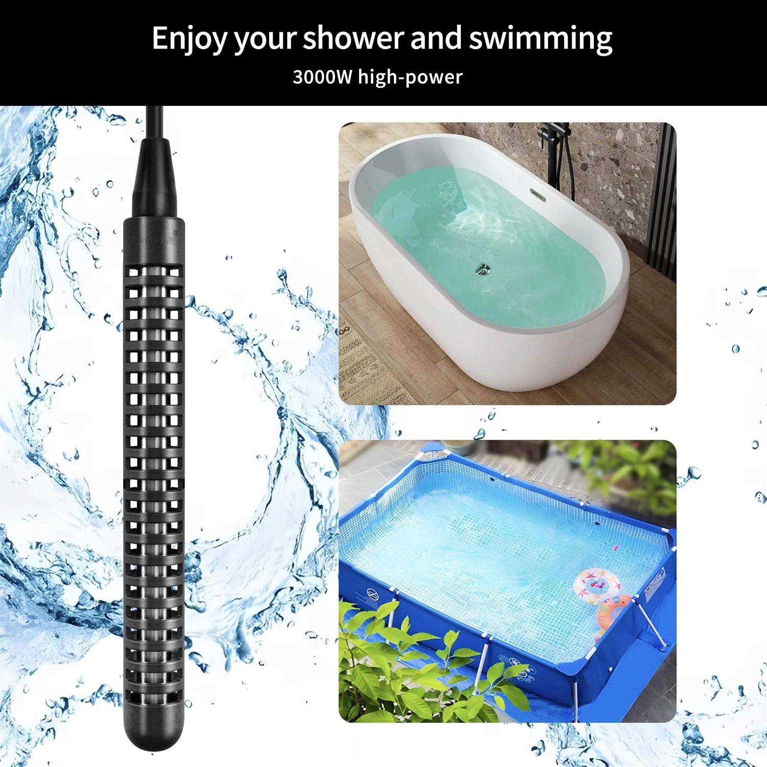 GRILLME 240V 3000W Immersion Bathtub and Swimming Pool Water Heaterfully Submersible Portable Electric Heater30 Galons Bathtub Heater200 Galons Swimmi