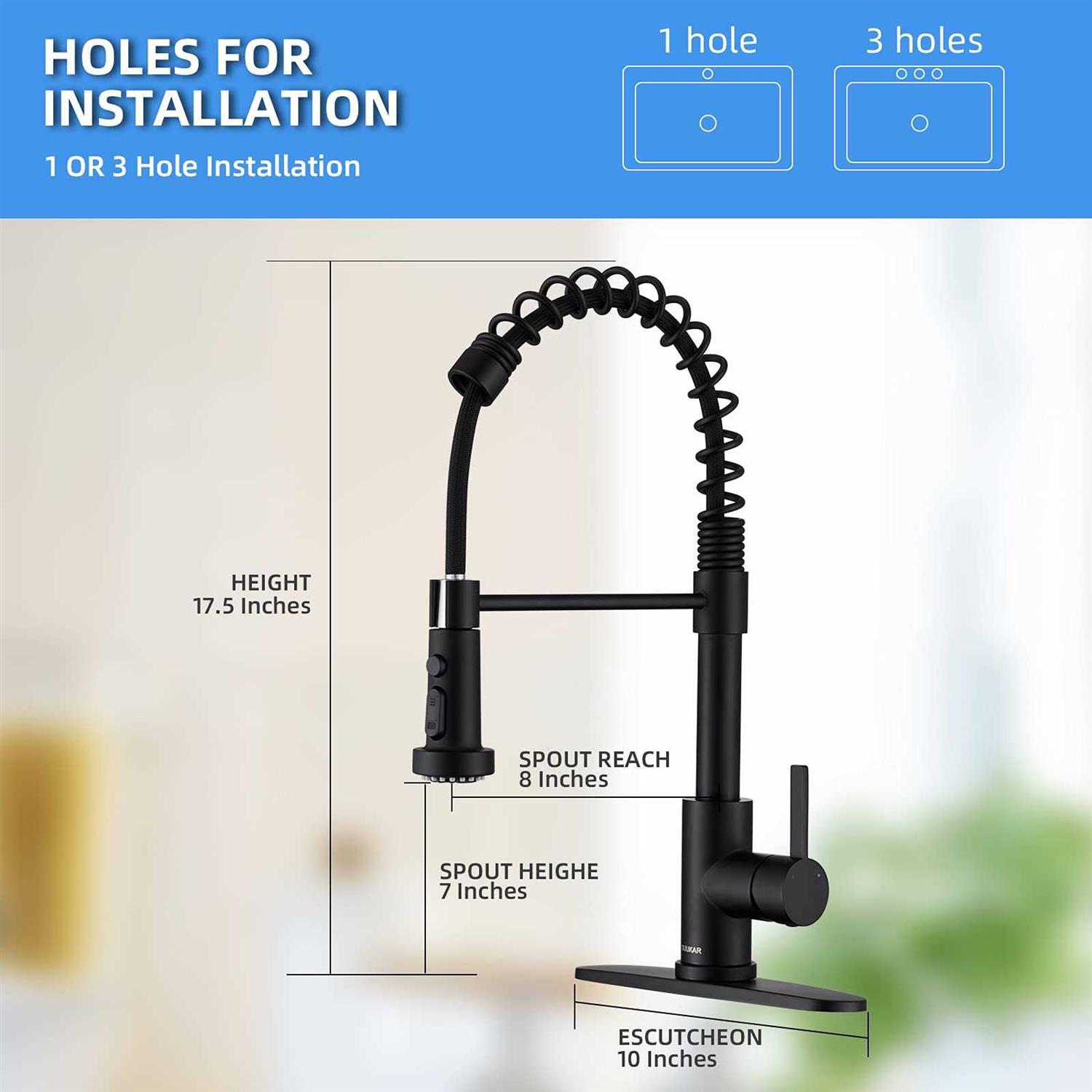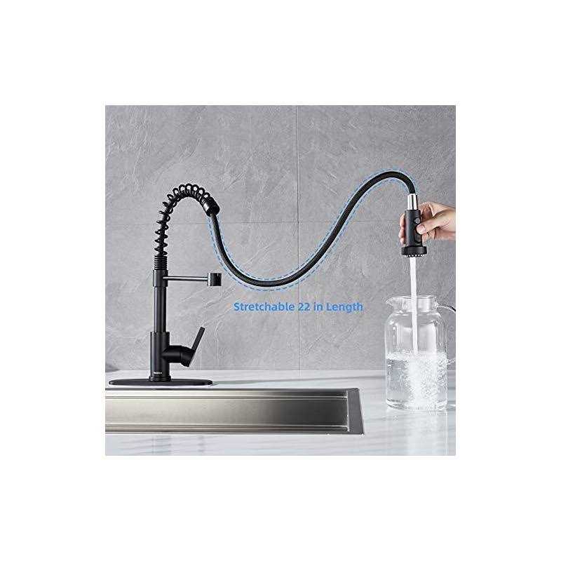 PULL DOWN KITCHEN FAUCET: The pull out tube connected to the nozzle can extend to 22 inches. this pull down faucet has a wider cleaning range than other faucets, make sure you will not leave any place when you clean the large sink. LEAD FREE KITCHEN FAUCET: The sink faucet is made of lead-free high-quality stainless steel, ceramic valve, hot and cold water inlet hoses, and pull down hoses all have passed CUPC certification, which provides reliable protection for water health, please feel free to use it. 3 WAY SPRAYER KITCHEN FAUCET: There are 3 various spray functions, bubble stream water can effectively reduce splashing when receiving water; spray water will improve cleaning efficiency; powerful spray function is suitable for cleaning tableware with heavy oil stains. Easy to install: The faucet for kitchen sink with a cover plate, it is compatible with 1or 3 hole kitchen sinks, according to the installation instructions, you can complete the installation within 20 minutes easily without hire any plumber, saving money and time for you.