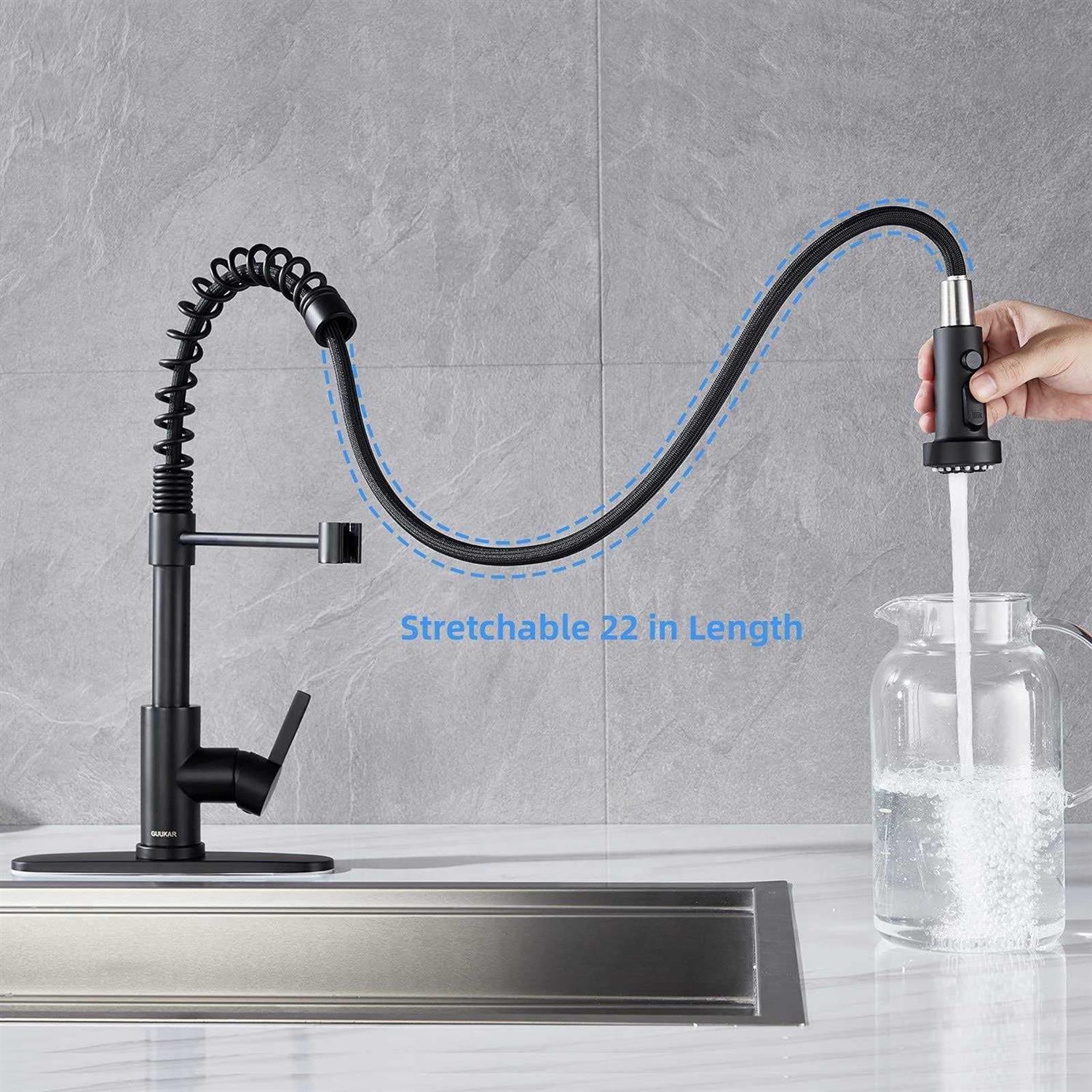 Faucet for Kitchen Sink, Black Kitchen Faucet with Pull Down Sprayer, GUUKAR Modern Commercial Spring Pull-Out Kitchen Sink Faucet