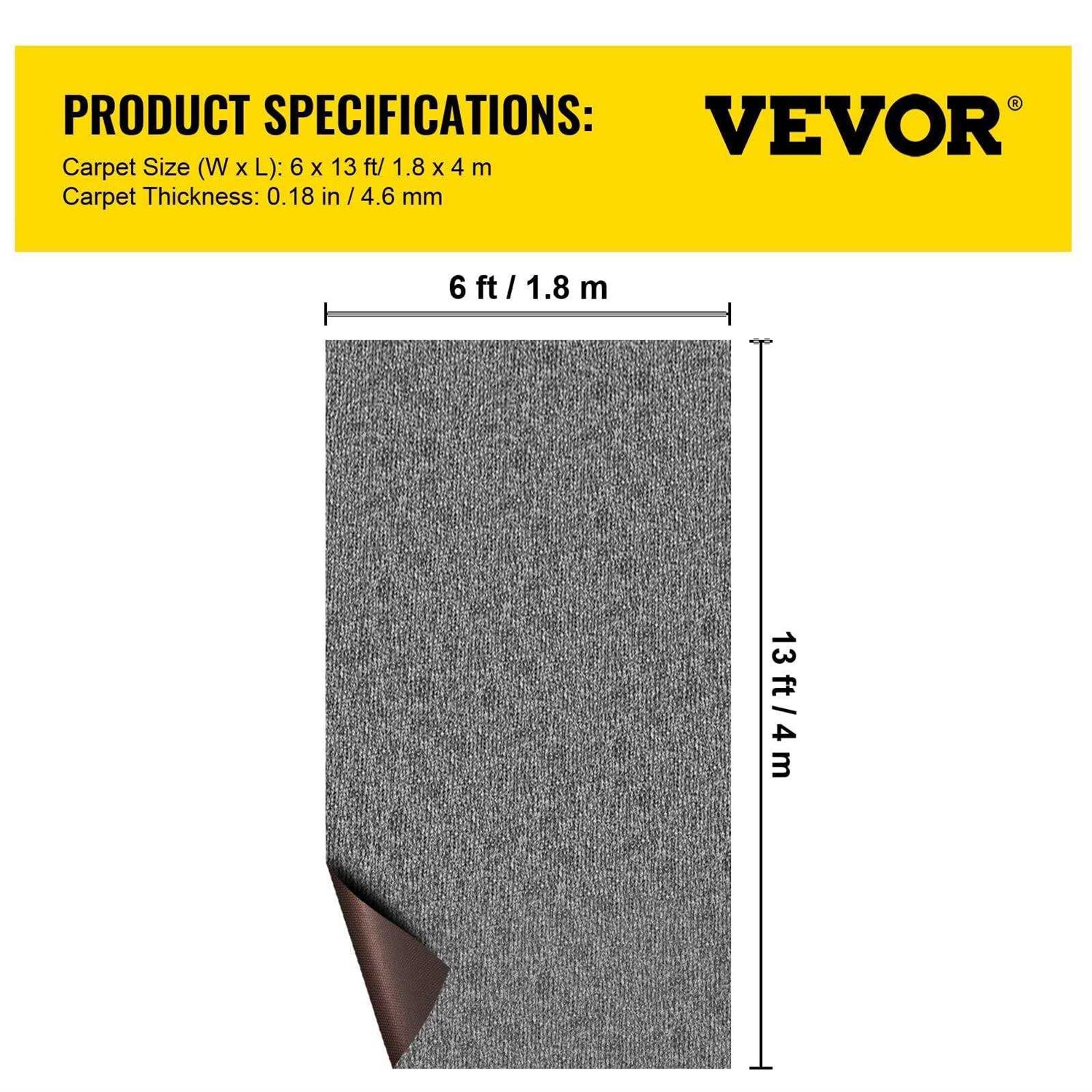 Premium Marine Carpet: Color: Gray; Size: 6 x 13 ft (1.8 x 4 m); Carpet Thickness: 0.18 in (4.6 mm); Covering Area: 78 sq.ft (7.2 m²). Upgraded polyester fiber ensures our advanced marine carpet remains durable for years to come. Note: Our gray carpet contains a little blue fiber. Therefore, it looks blue under the bright; it looks gray when the light is not particularly good. Non-slide Surface: Ribbed texture on the surface will add friction. With 0.17 in (4.5 mm) low pile height, this boat carpet not only avoids sliding but also keeps a soft feeling even when you walk on your bare feet. Water-proof Back: The backing of the outdoor carpet roll adopts soft rubber material, efficiently prevents water penetration, and doesn’t scratch the floor. Thus, you no longer need to worry about corrosion after long-term use. Effortless Cleaning & Installation: Stubborn stains can be quickly cleaned with a vacuum machine. Thanks to its only 0.18 in(4.6 mm) thickness, you can easily cut the bass boat carpet into any shape to fit any space with scissors or utility knives, and then use glue to finish the installation. Indoor & Outdoor Use: Ideal for kitchens, bathrooms, living rooms, patios, porches, decks, boats, sun-rooms, basements, garages, etc. Our soft boat carpeting becomes a necessity for your daily decorations.