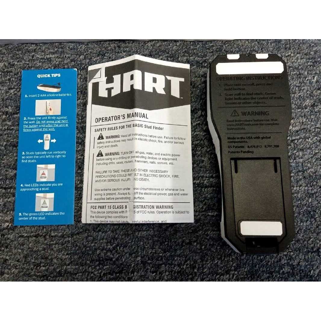 The HART BASIC Stud Finder is the perfect tool for simple projects such as hanging pictures or towel racks. Its compact size allows you to easily keep track of your tool by slipping it into a pocket. The HART BASIC stud finder is a Center Finder and thus eliminates the additional steps of scanning both direction and marking to find the center of the hidden object. The operation simply press and hold the button. The unit will quickly calibrate, and the LEDs will illuminate in sequence as you approach a stud until it turns green to pinpoint the center.