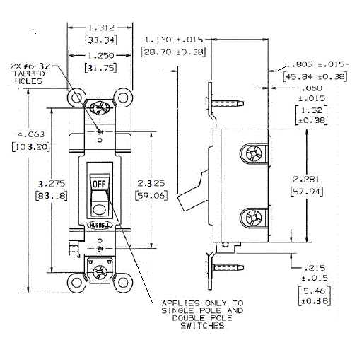 Hubbell Wiring DPST AC Toggle switch in white color has a current rating of 20 Amps and an voltage rating of 120 – 277 VAC. Switch has a power rating of 1 hp. It can be screw mounted. Switch comes with 2 switch handle positions and operates at a temperature range of – 40 to 75 deg C. The 2-Pole switch has back and side wires for added convenience. Standard-size switch features positive snap action and 50000 operating cycles. It measures 1.310 Inch x 1.130 Inch x 4.060 Inch. It is a general-purpose switch that is widely used for extra heavy-duty industrial applications. It conforms to UL/NEMA/CSA certifications.