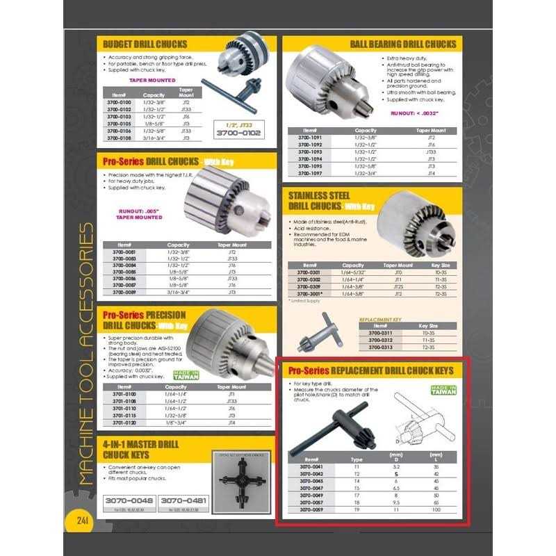 • This key is specifically designed to fit drill chucks with a .312″ pilot size.