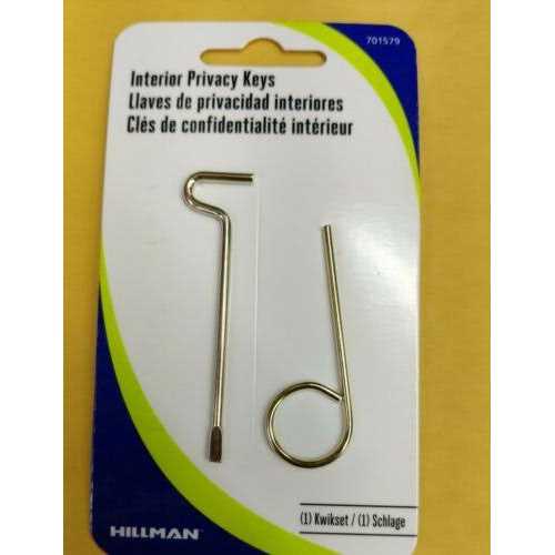 Kwikset privacy key is 2-1/2 inches long with a flat on one end and a grip hold on the other. Instructions for use: place the flat slotted end of the key into the center of the knob/lever hole. Insert the key until it stops. Turn key clockwise until the key falls into the groove. Turn the key to the left on lever locks and to the right on knob locks to open. Schlage privacy key is 2-1/8 inches long with a round shaft with a flat on one end and a loop on the other. Instructions for use: Fully insert the end of the key into the center of the hole and push to unlock.