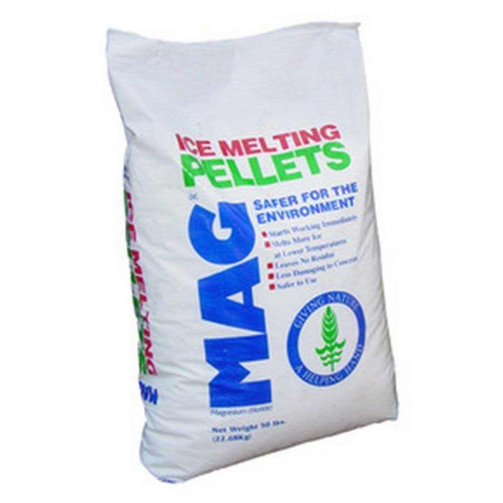 - The 50 lb. Magnesium Chloride Pellets effectively melt ice at temperatures as low as -15 degrees Fahrenheit.