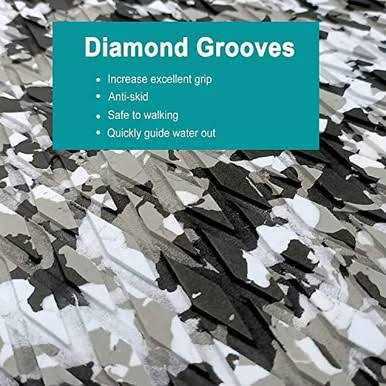 Premium EVA Foam Boat Decking —– This boat decking flooring are made from high quality EVA foam, has advantages of good cushioning, sound & shock absorption. It is high tensile elongation, boat deck mat is not easy deformation or damage, safe and can be durable for a long time Non-Slip Traction Pad —– EVA foam boat flooring sheet feature with diamond grooves, can increase friction and play a good anti-skid, also can quickly guide rainwater out if it rains. EVA foam boat decking sheet provide exceptional comfort and traction, whether dry or wet Camouflage EVA Foam Sheet — Unique camo EVA foam decking sheet, making your boat deck special. This self adhesive boat decking marine decking is EASY TO CLEAN with vacuum cleaner or be pressure washed Easy to Install —– Boat flooring has strong glue at the back, self-adhesive to install marine carpet to the floor surface. EVA foam marine flooring decking is also can be freely cut to a suitable size, eva foam boat decking camo fit the different shapes of decks Wide Application —– Sea deck boat flooring perfect for boat flooring, RV flooring, kayak decking, yacht floor, pontoon boat flooring, golf cart, swimming pool, boat trailer, surf mat, surfboard traction pad, motorboat, marine deck mat, car or other place