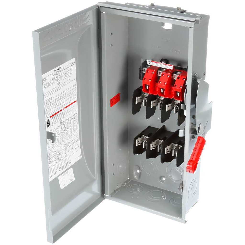 Siemens heavy duty safety switches are available in 30-1200A ratings and in Type 1, 3R, 12 and 4X enclosures. Both fusible and non-fusible versions are offered. They can be used on circuits that are rated through 200K when protected by or used with Class R or J fuses. They feature quick make and break operation and visible blade construction.