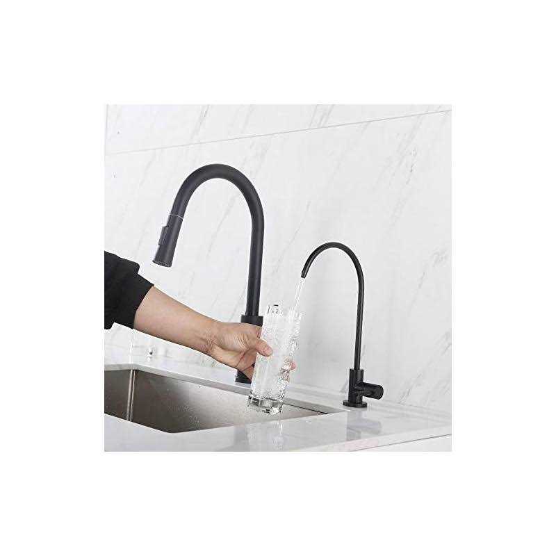 【LEAD-FREE DRINKING WATER FILTER FAUCET】Ensures safe and easy access to filtered water, Premium 100% metal and lead-free non-air gap ceramic disc designer drinking water faucet 【SINGLE HANDHELD BEVERAGE FAUCET】Easy to install even to say TOOLS-FREE installtion,also designed for quick and easy control of water flow. 【QUALITY MATERIAL】SUS304 stainless steel with solid metal handle controls the smooth and durable, anti-corrosion and rust-resistant finish for daily use 【EASY TO USE】This matte black filtered water faucet,with high arc 360-degree swivel spout provides full range using access, allowing pure water to pour at direction & rate you desire 【WARM TIPS】THIS kitchen faucet water filter only for COLD WATER,only have one inlet.