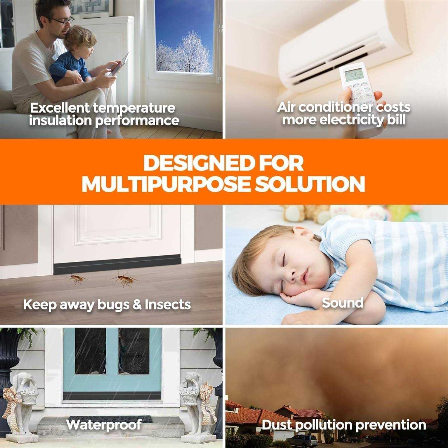 Have you met this kind of problems? 1. air condition can’t keep your room cold or warm 2. Always have dust on your surface. 3. Noise reduces your sleep quality. 4. Nice door draft blockers for all season protection, It is made of high quality silicone, non-toxic, durable and flexible, wind blocker, dustproof, noise reduction as well as prevent the cold air in, makes your room more warm in cold winter, more cool in Summer, helps a lot to save electric bill. With this entry door weather-stripping and seal the crack, make life more safe and more comfortable.