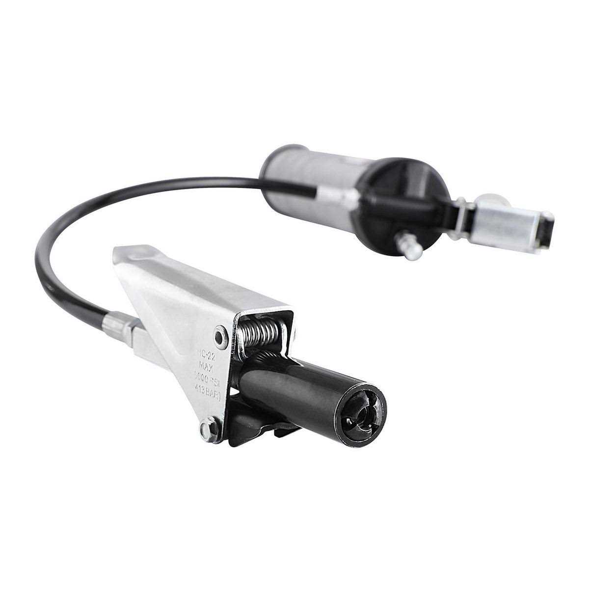 The HOLT INDUSTRIES locking grease coupler features a universal fit to work with all types of grease guns. Built for professional use this heavy duty locking grease coupler offers a 3 jaw construction to help with better alignment, hands free and leak proof greasing, ergonomic palm lever to engage and disengage coupler under high pressure, heat treated spring steel jaws designed to fit SAE and metric grease fittings and universal fit designed to work with all types of grease guns.