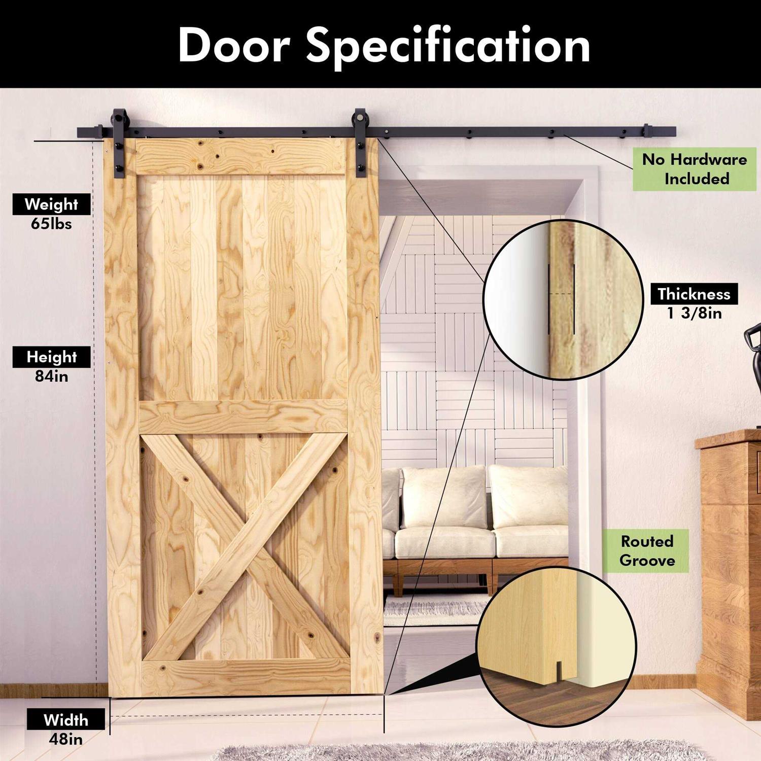 Homacer 84-in Unfinished Pine Wood Single Barn Door